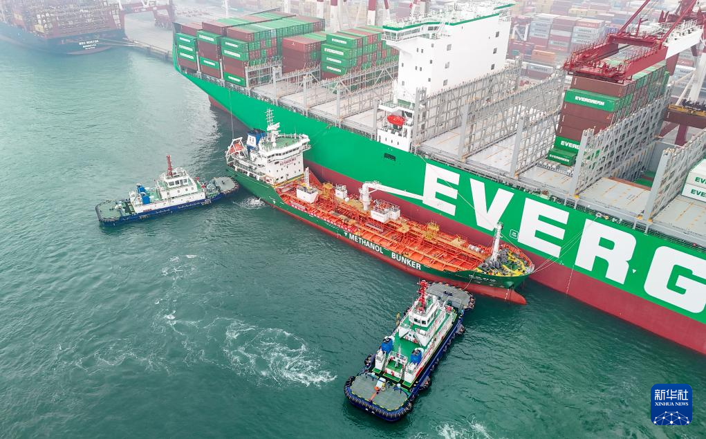 山东港口青岛港完成首批绿色甲醇“船对船”加注