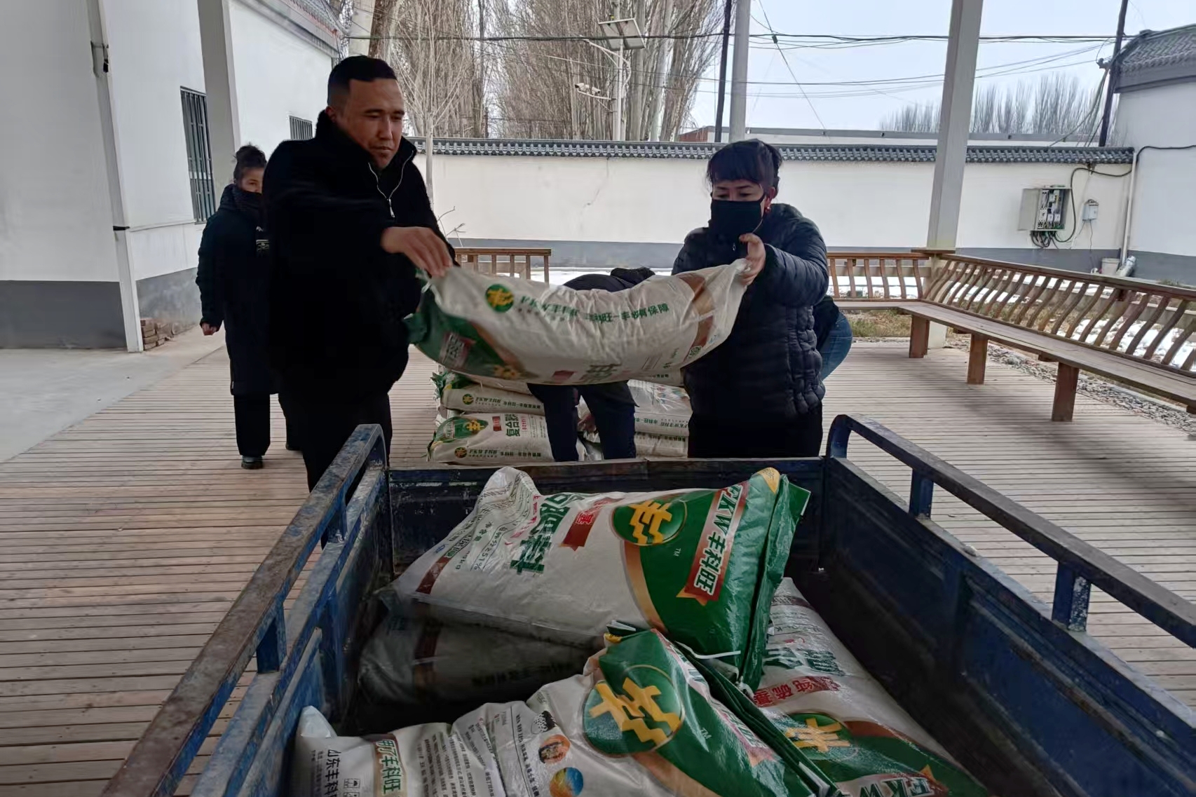 阿克苏市依干其镇布隆科瑞克村“两委”联合新疆红旗坡农牧业投资发展集团有限责任公司驻村工作队,充分发挥派出单位资源优势,为辖区20户困难群众发放化肥2吨,以实际行动解民忧、纾民困。
