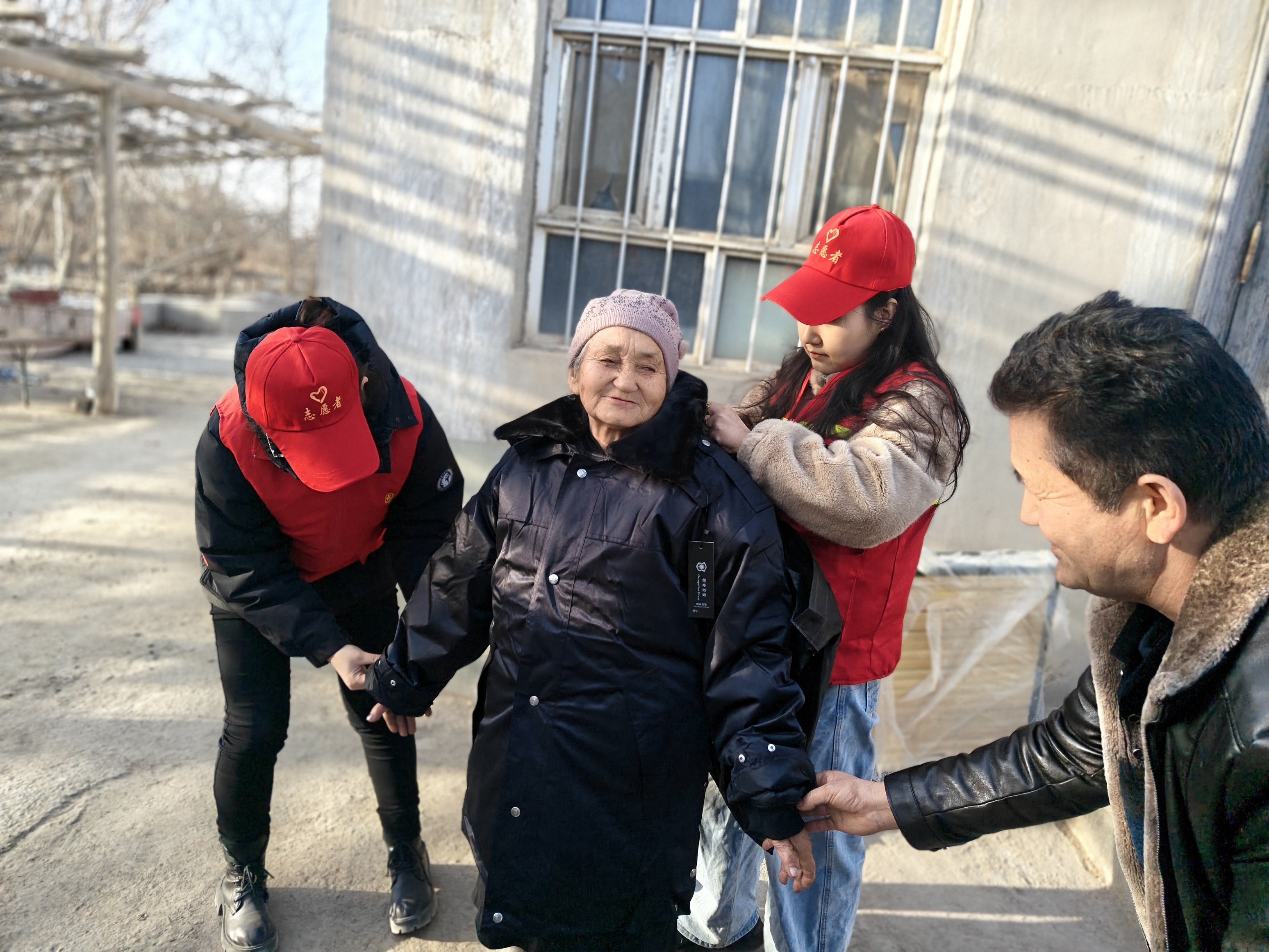 活动当天,志愿者逐户上门,将166件棉衣棉裤、被褥鞋子等暖冬物资送到他们手中,并向村民讲解“新疆两会精神”中确定的2026年“十大民生实事”——“大叔,您的养老金提高了,低保金也上涨了,党和政府一直惦记着咱们呢!这些棉衣、棉裤、鞋子等等都是给您的春节礼物,家里还有什么难处,及时跟我们说!”工作队员握着达吾提·依明的手,亲切地说。
