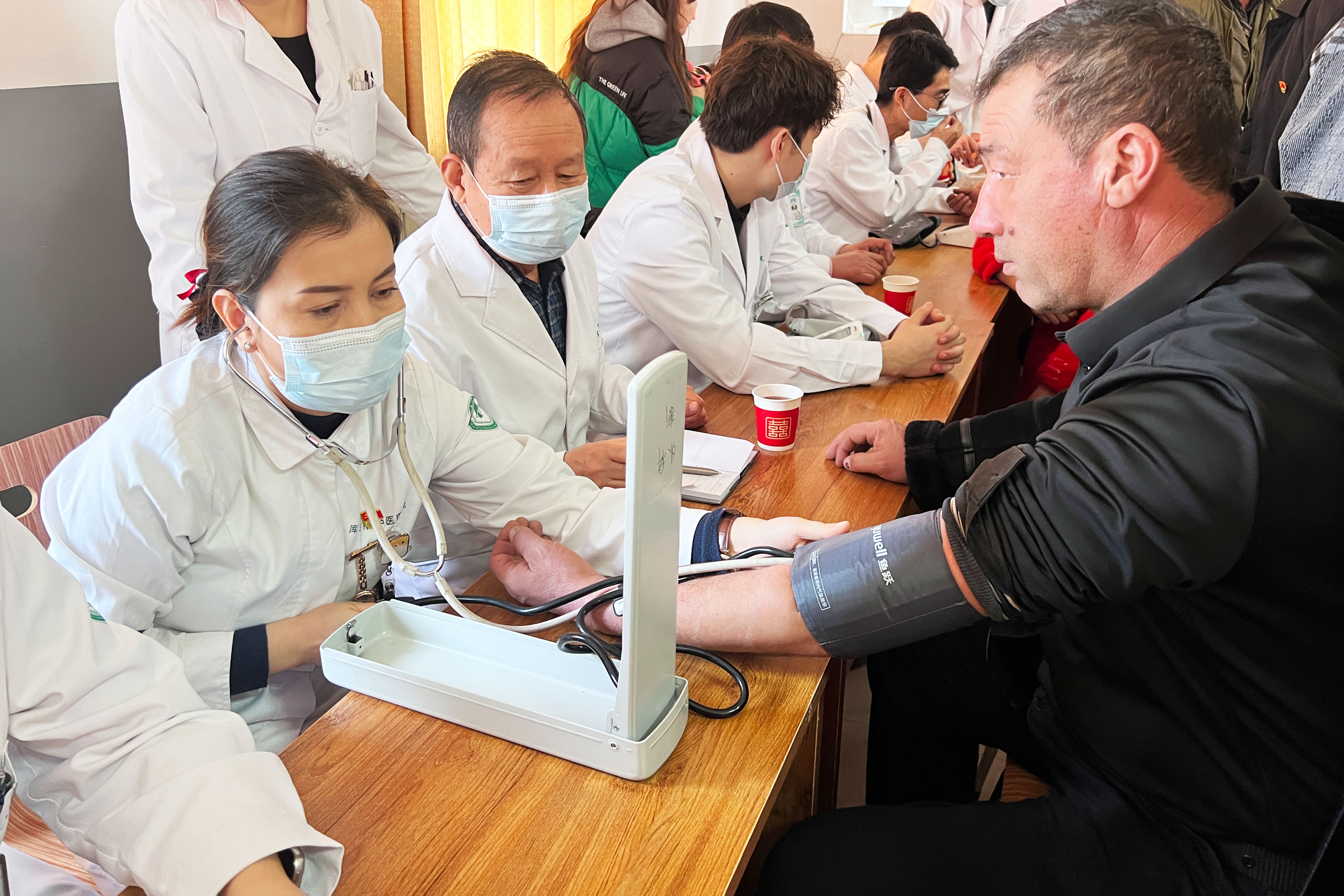 库车市玉奇吾斯塘乡代尔瓦扎亚村“两委”联合市融媒体中心驻村工作队,邀请市医共体总院中医医院医务人员到村,开展“新春义诊暖人心”活动。医务人员为200多名村民提供把脉、推拿等诊疗服务,并设置中医药文化体验角,普及养生知识,送上温馨的新春健康关怀。