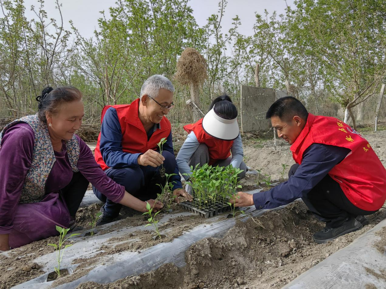 近期,地区政协工委机关驻阿克苏市依干其镇良种尤喀克乔格塔勒村工作队队员在走访中发现,坎拜尼沙家因缺乏劳动力,院子里的两亩菜园无法耕种。了解情况后,工作队队员便带着100余株鲜嫩的菜苗和农具来到他家,帮他种植蔬菜。