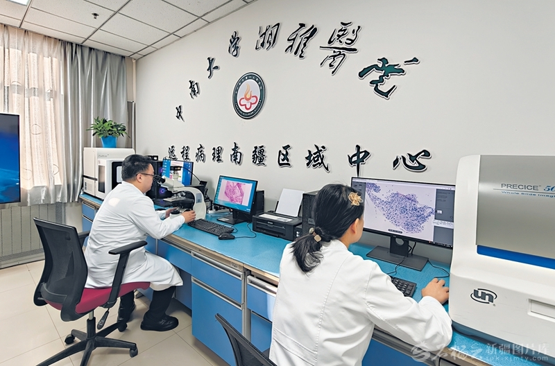 1月14日,在库尔勒市紧密型医共体总院的中南大学湘雅医院远程病理南疆区域中心,医生正在阅片。天山网-新疆日报记者 杜建辉摄