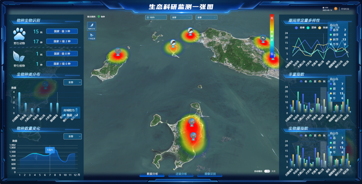 太阳升起,天光大亮,一群海鸥掠过车由岛海面——几乎同一秒,岸基和智慧生态物联感知系统瞬间拍照,并通过鸟类数据库进行AI分析比对,识别其为“黑尾鸥”,并将照片与识别结果存档。“这些监测记录会自动归档到对应的物种名录里,给我们省了不少工作量。”值班员评价说。
