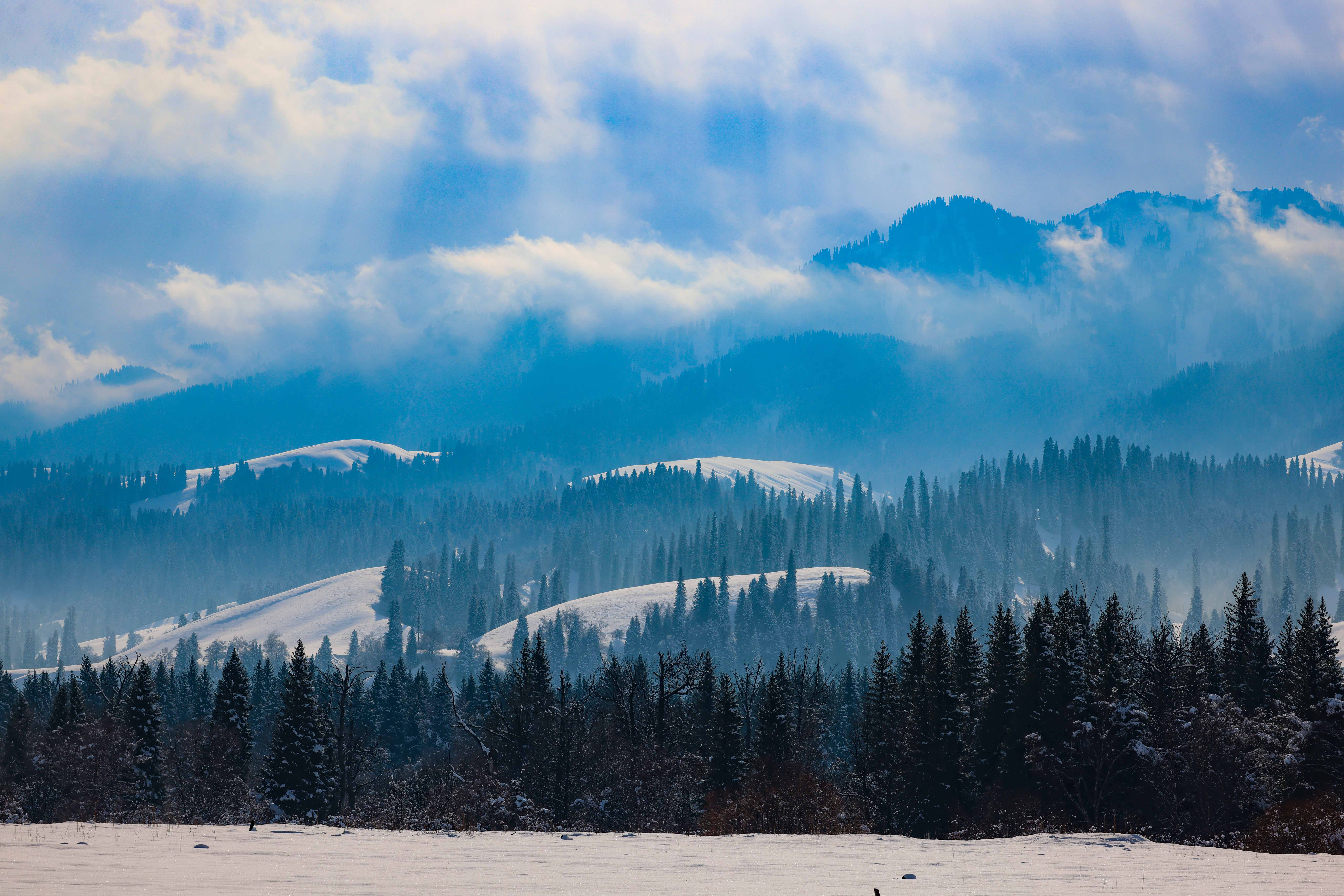 疆山如画丨雪润那拉提 水墨绘初冬