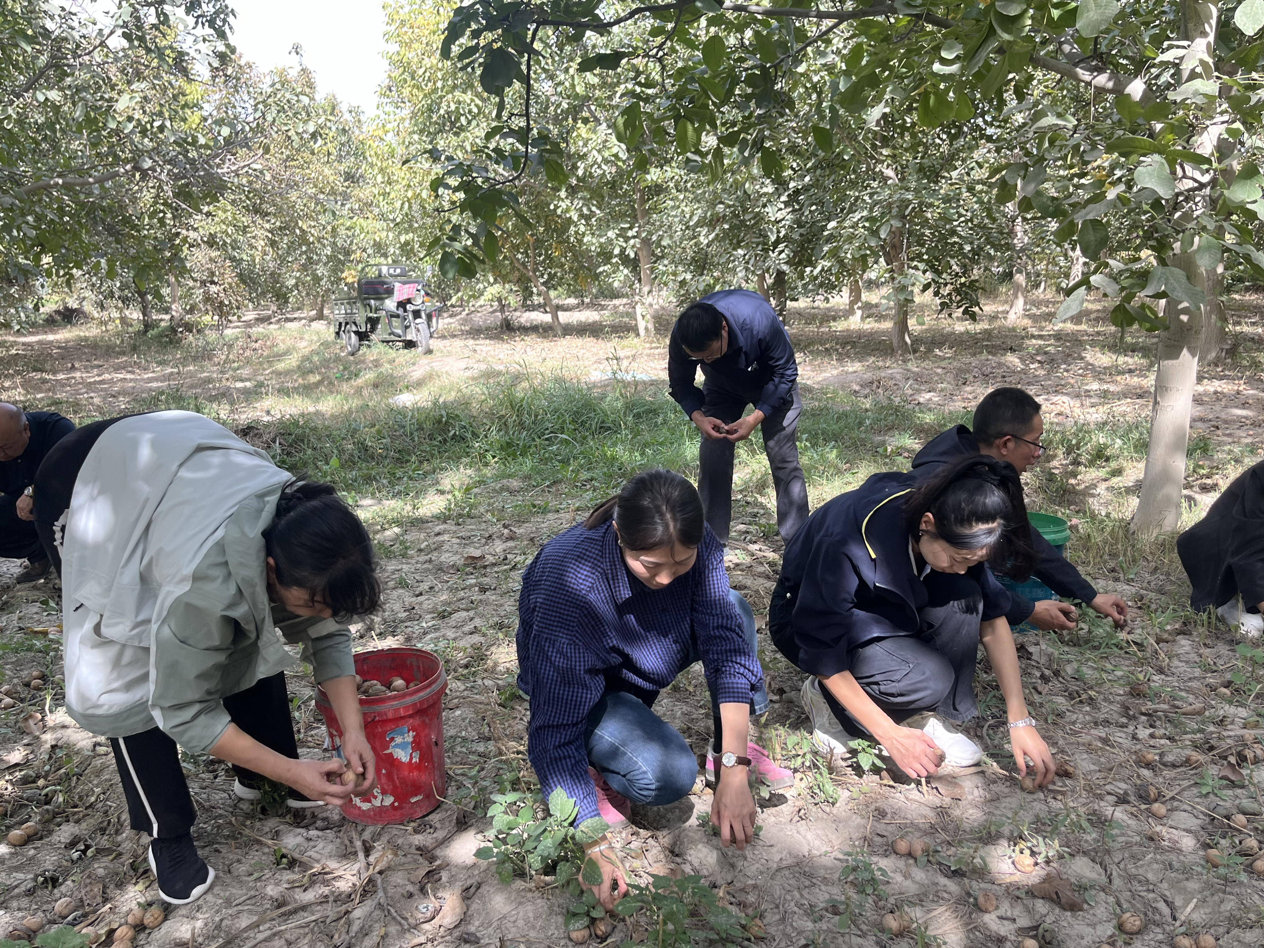 时值秋收农忙,干部挽起袖子,走进田间地头,与结亲户一同参与捡核桃,大家边劳动边交流,现场气氛热烈融洽,在共同的劳动中进一步增进了了解,加深了情谊。