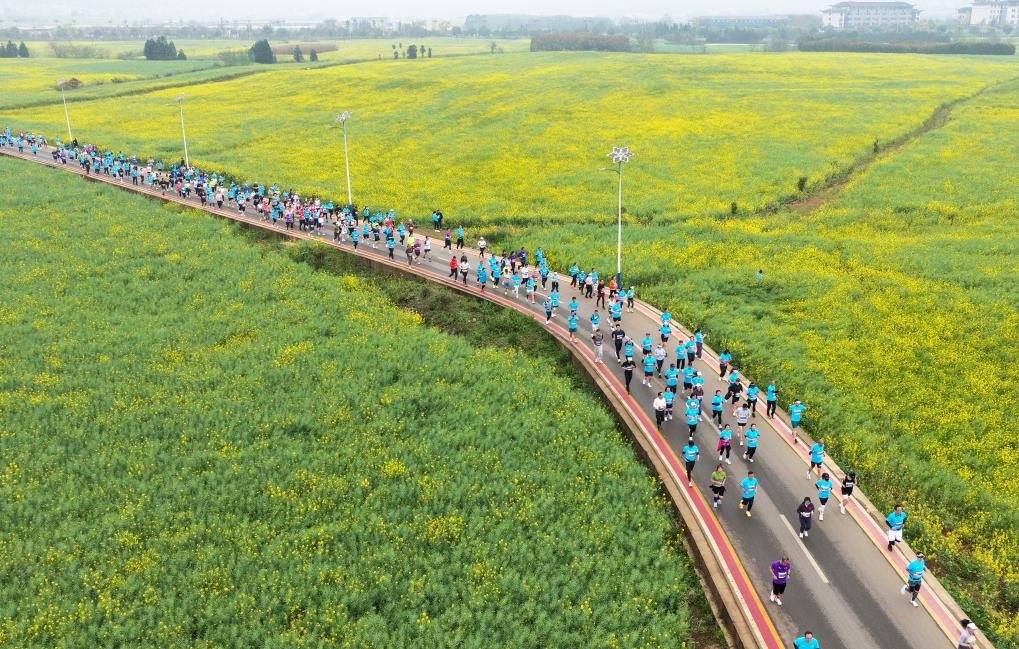 3月15日,2026曲靖罗平花海马拉松在罗平县鸣枪开跑(无人机照片)。新华社发(毛虹摄)