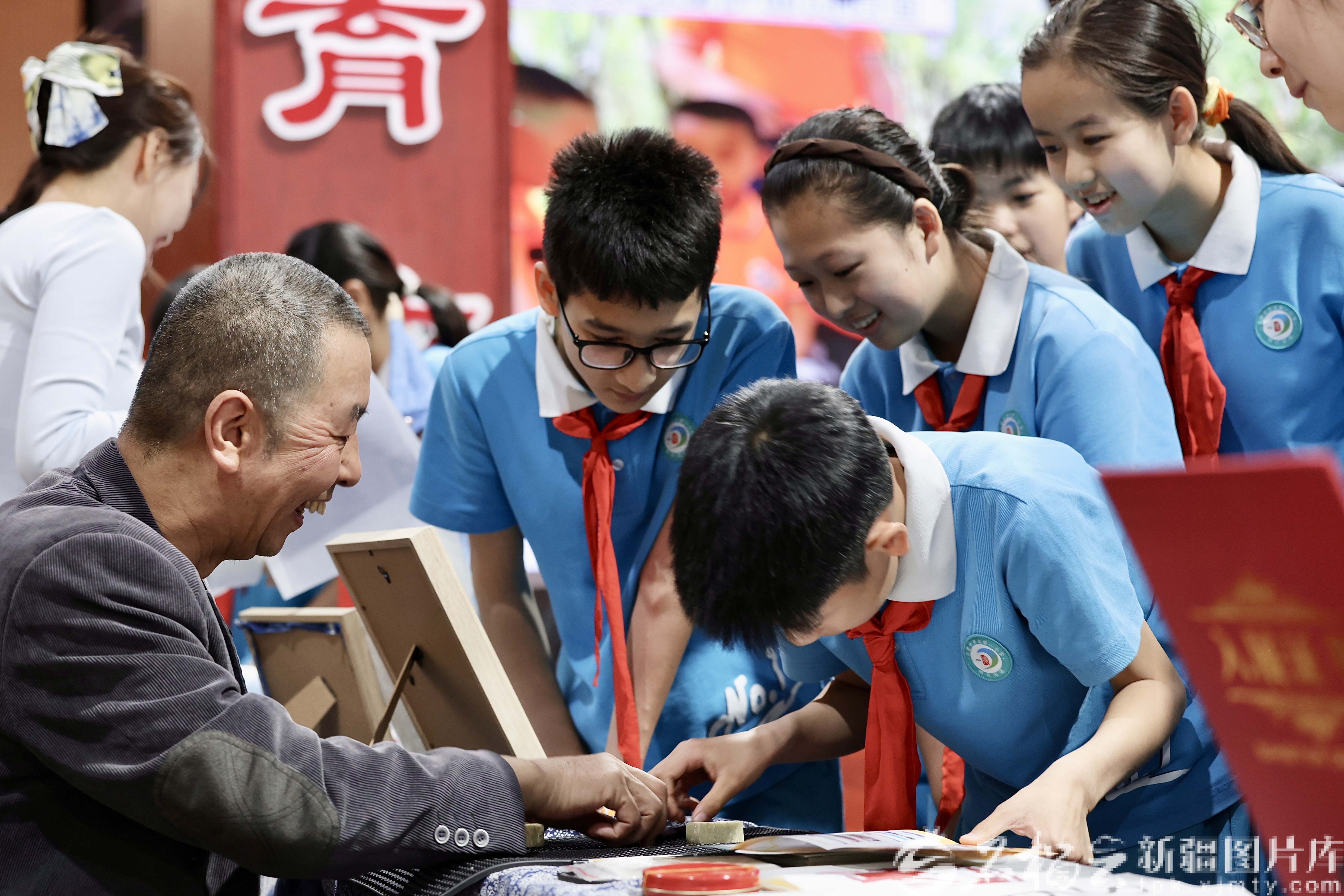 活动现场,武术、舞狮等节目轮番上演,赢得学生们的阵阵掌声。篆刻、擀毡等非遗技艺展示体验同步进行,学生们化身“小匠人”,近距离感受传统技艺魅力。