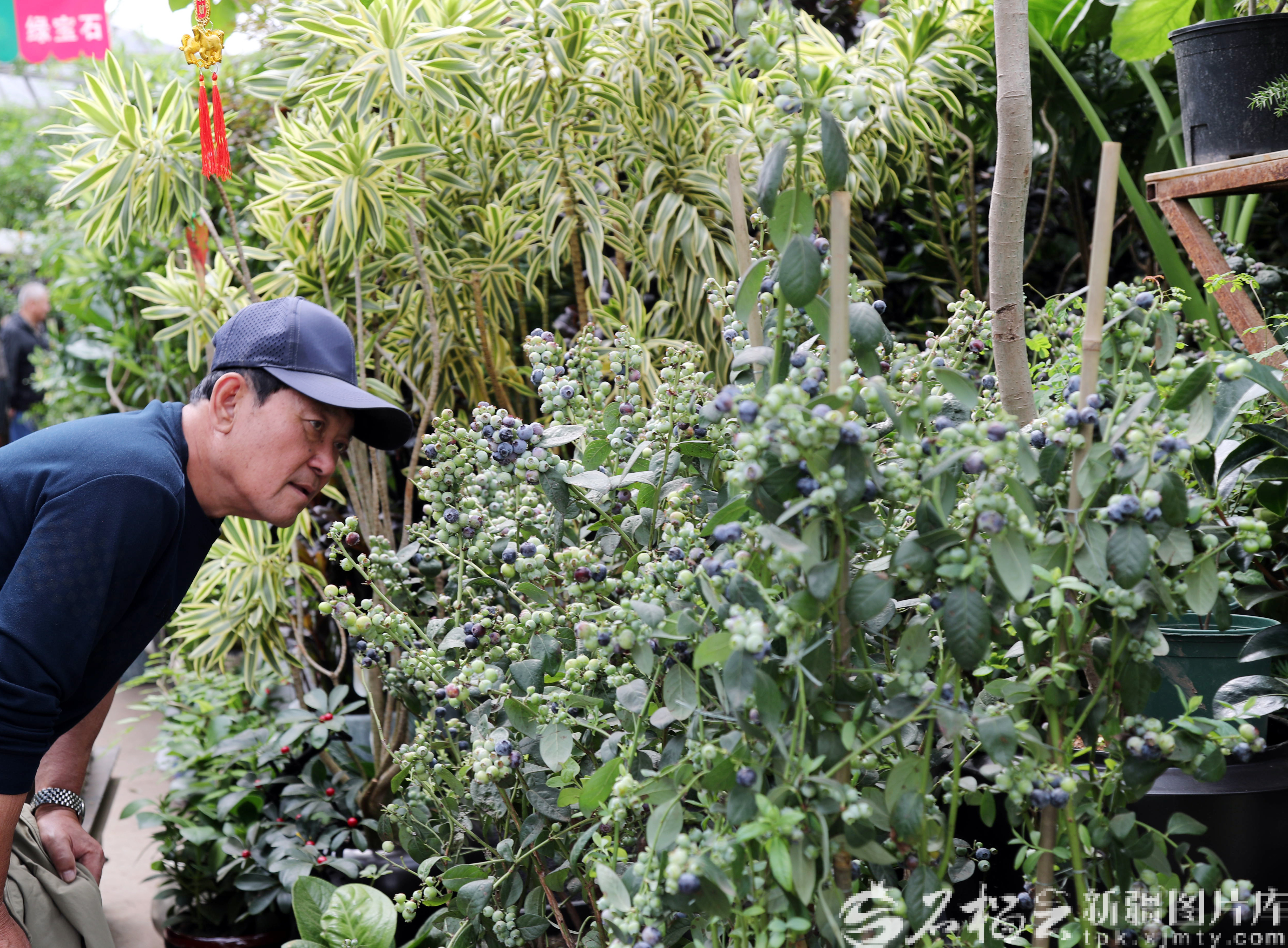 4月22日,在明珠花卉市场内,市民正在选购蓝莓苗 。