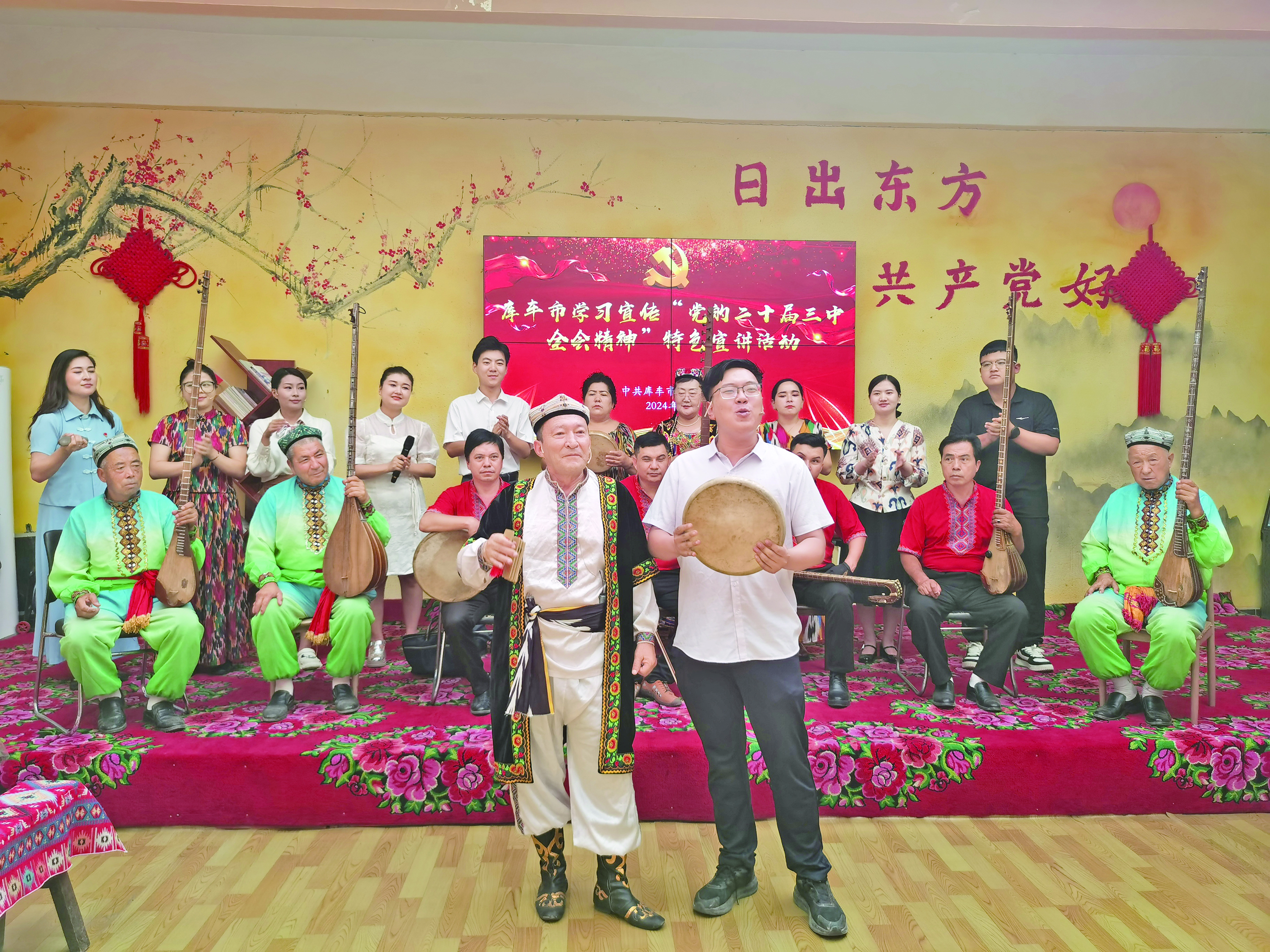 阿克苏新闻网/阿克苏地区融媒体中心讯 (文/图 记者 刘红文 卢昱豪 通讯员 杨庆玲) 连日来,地区各地各部门深入学习宣传贯彻党的二十届三中全会精神,通过“宣讲+文艺”“宣讲+互动”等形式开展宣讲活动,推动全会精神家喻户晓、深入人心。
