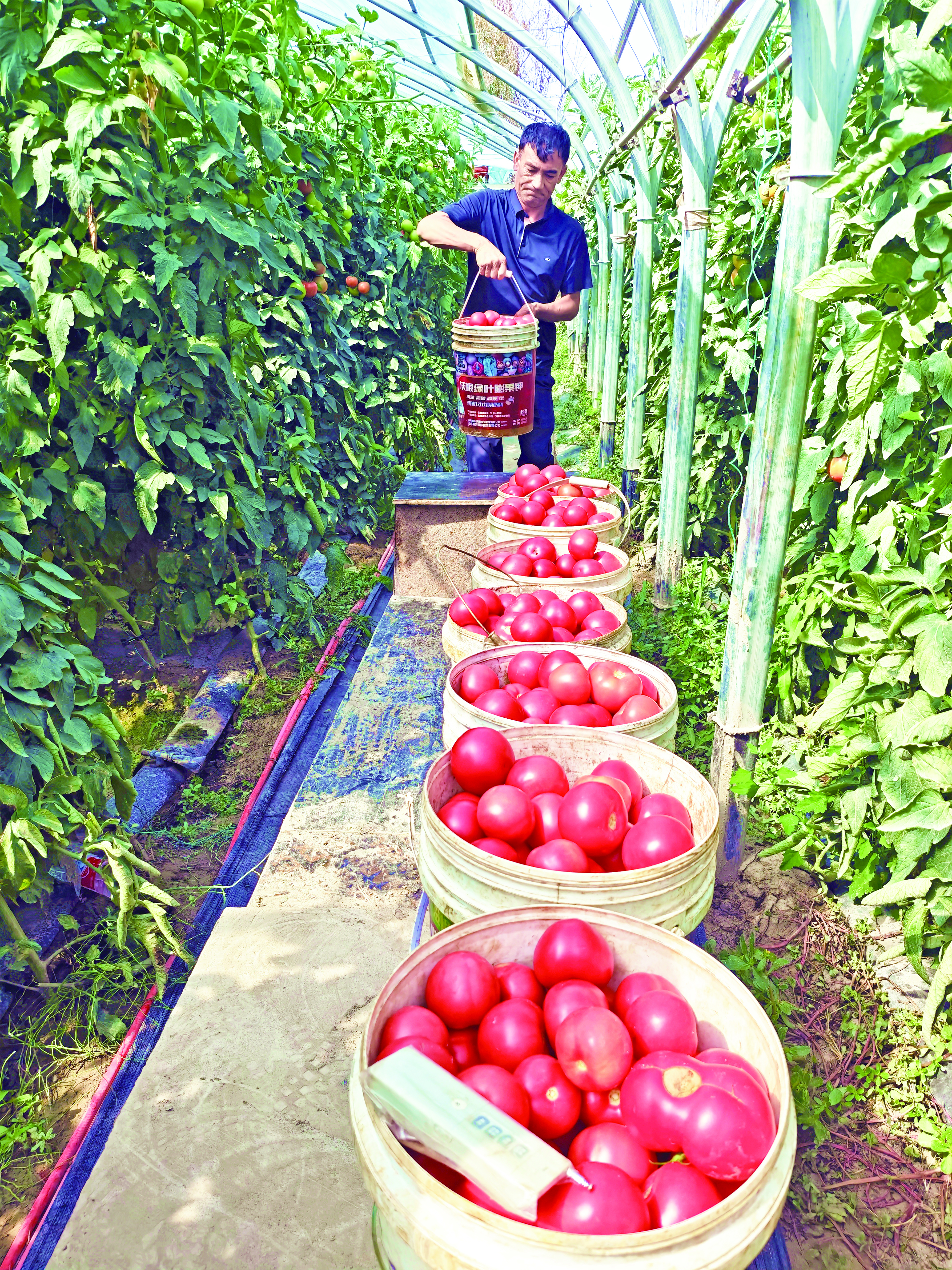 8月28日,阿瓦提县阿瓦提镇团结社区大棚蔬菜种植基地,党员志愿者帮助村民搬运西红柿。眼下,团结社区大棚种植的西红柿进入采摘期,阿瓦提县供销合作联社组织党员干部深入种植基地,帮助村民采摘、分拣、套袋、销售西红柿,促进农民增收。 通讯员 包良廷 摄