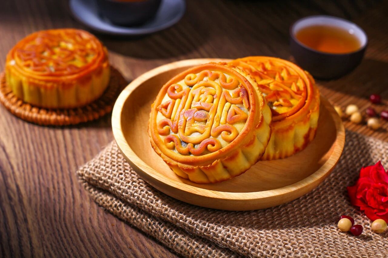 月饼是以谷物粉、油脂等为原料制成饼皮,包裹馅料,主要在中秋节食用的传统节日糕点。