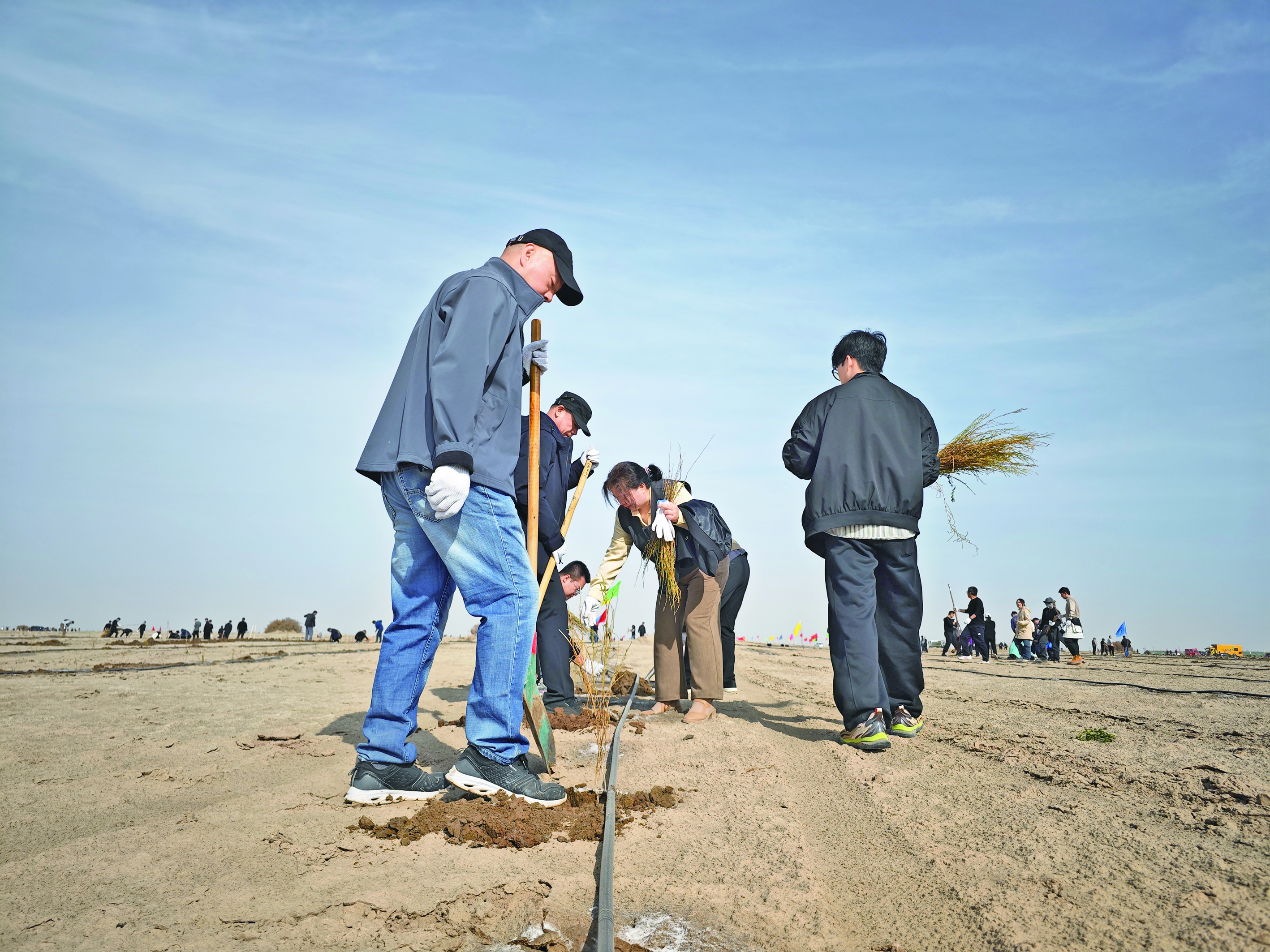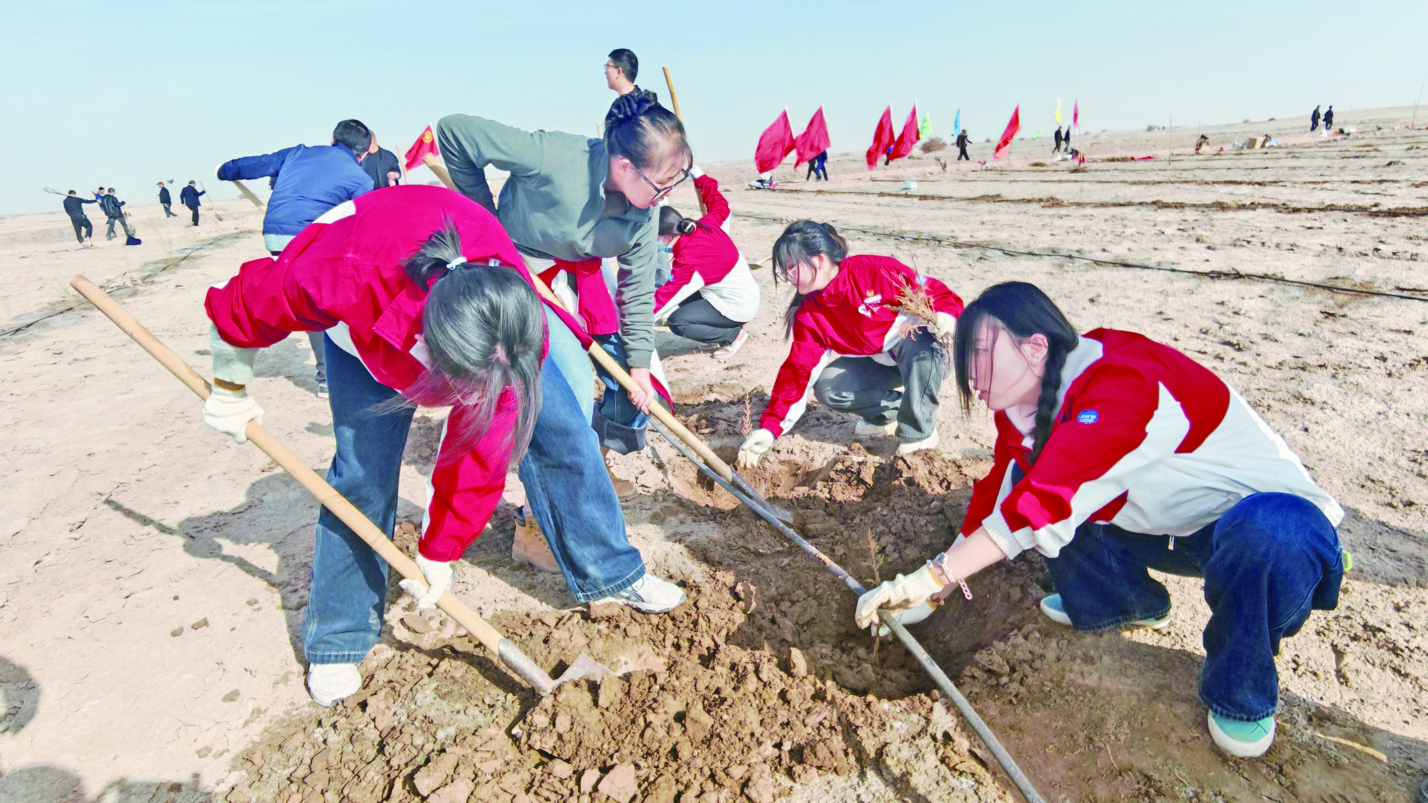 2024年地区启动塔克拉玛干沙漠边缘阻击战,利用春秋两季接续掀起集中会战、治沙热潮,重点实施“三北”防护林建设、退耕还林还草等工程,并大规模开展义务植树造林活动。如今,地区已成功在塔克拉玛干沙漠边缘筑起一道绿色阻沙防护带。