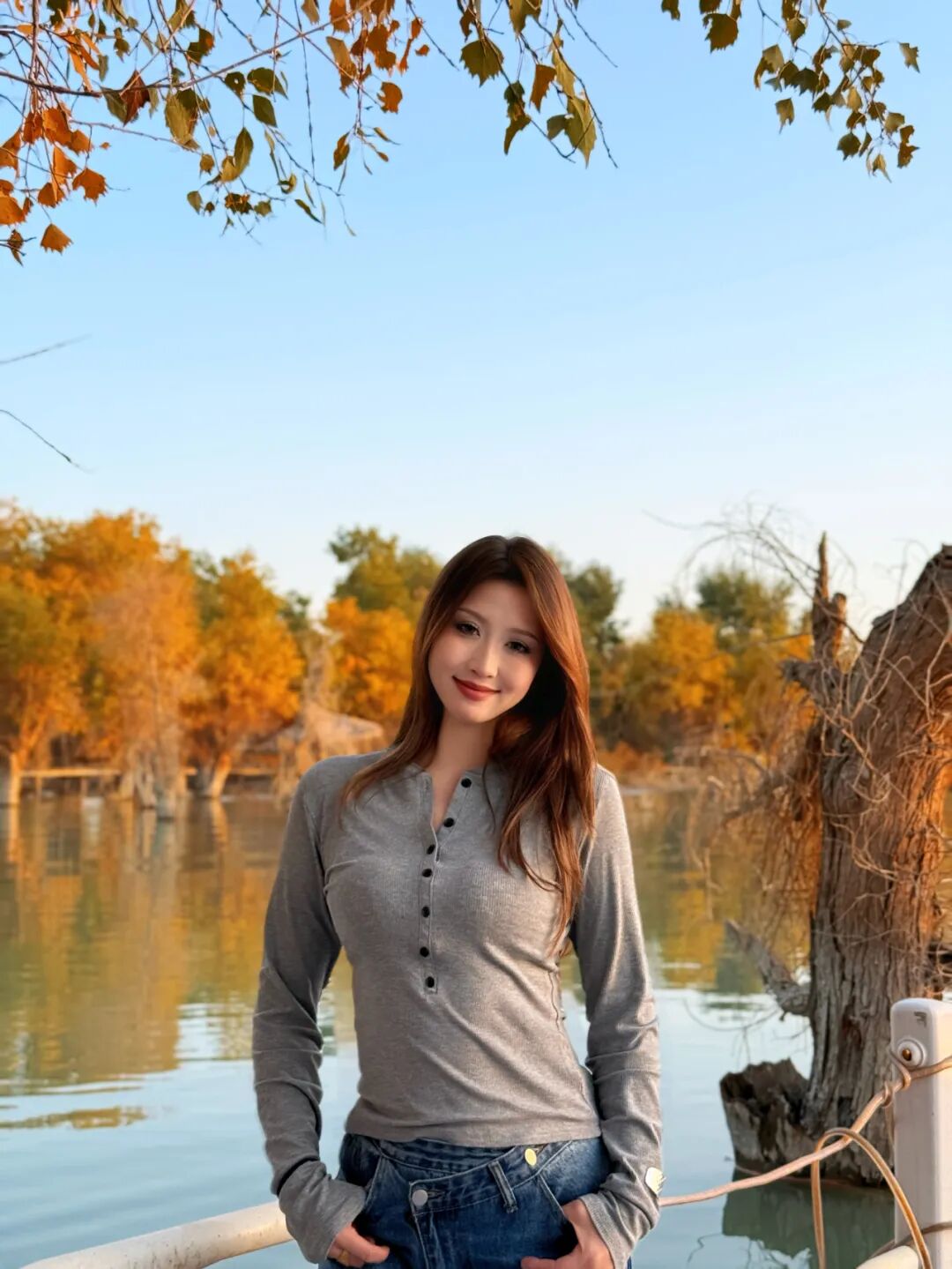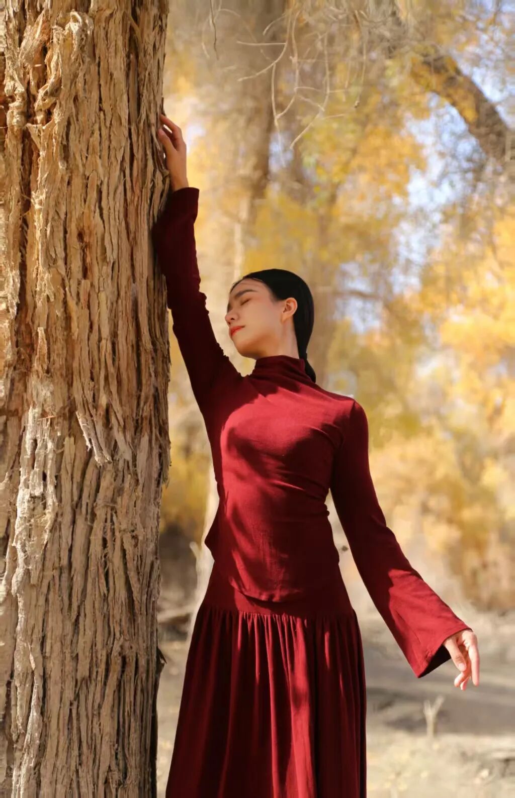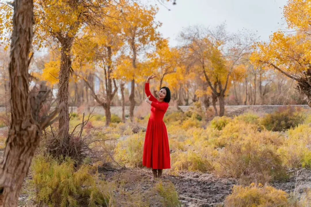 大地色系:比如卡其色、棕色,适合走 “森系” 风格,和胡杨林的氛围更融合,不挑人还显气质。