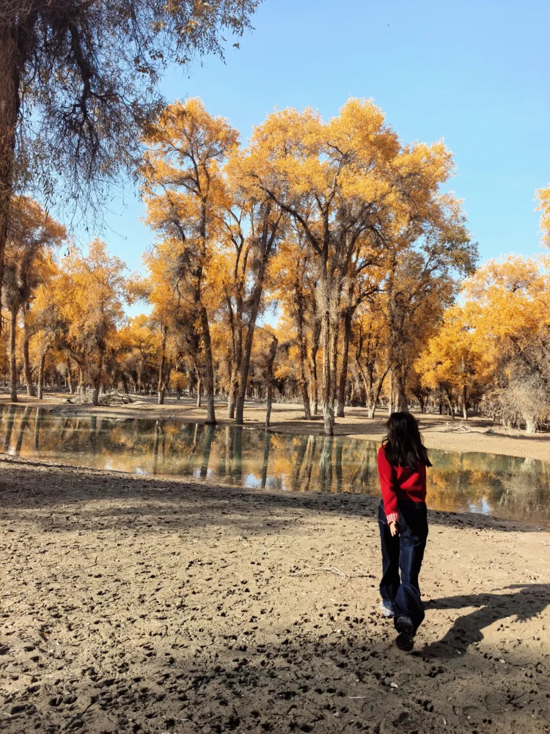 塔里木河沿岸:以河水为背景,站在浅滩上拍 “人在画中游”,或蹲在河边拍 “胡杨与倒影”,构图更显对称美;