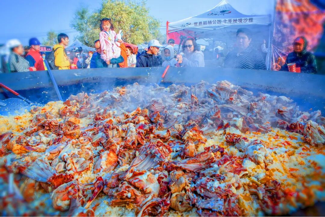 逛完胡杨林,可以品尝沙雅美味—— 用当地食材做的烤包子、海楼抓饭、缸子肉、胡杨菇炖鸡……味道正宗还实惠。