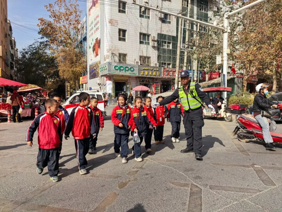 当清晨的阳光洒向校园,遍地金黄的枝叶间跳动着求学的身影;当暮色为街道披上余晖,叽叽喳喳的童声里藏着归家的期盼。在新城街道的每一个上学、放学高峰,总有一抹藏蓝格外醒目,库车市公安局新城街道派出所的民警辅警们,用坚守筑牢校园安全防线,用行动守护万千幼苗茁壮成长。