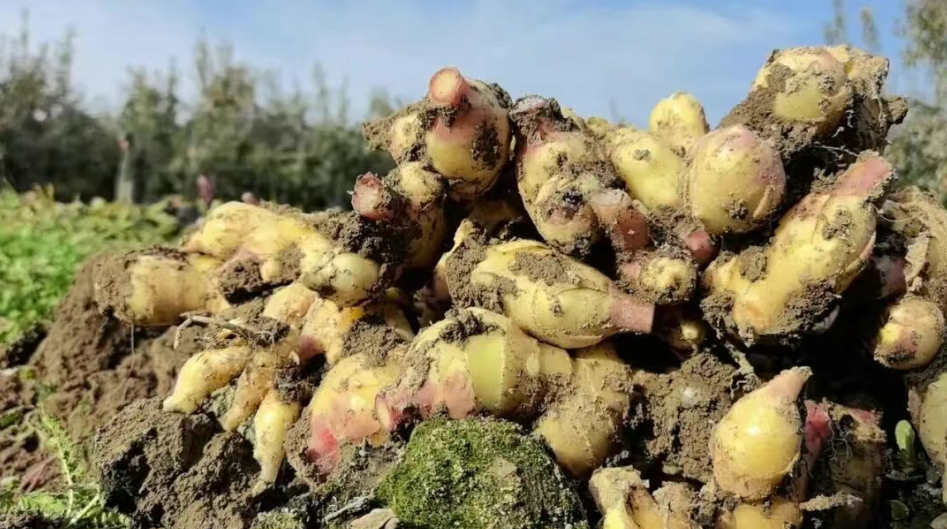 近日,阿克苏市依干其镇库木克什拉克村的生姜试种成功,迎来丰收。通讯员 孙季鸿 贾玉欣 摄