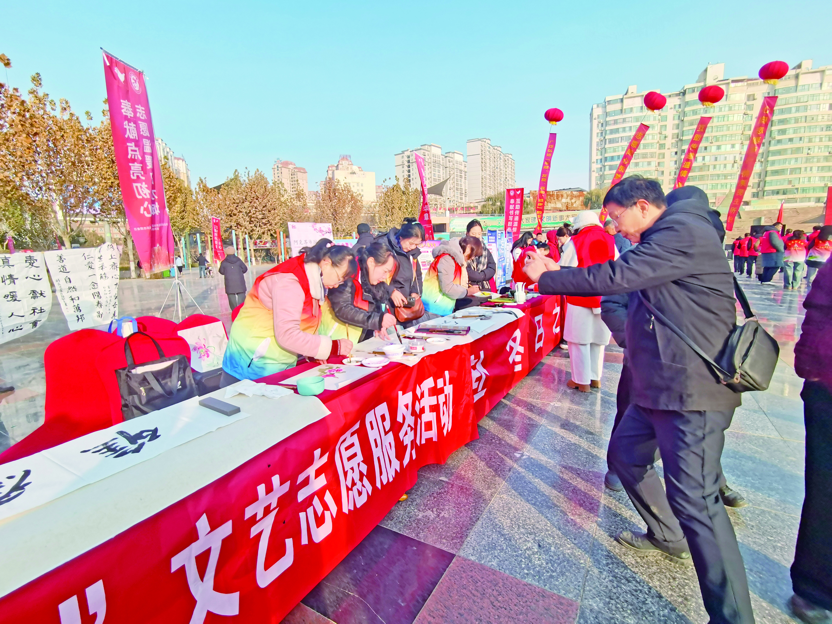 12月5日,文艺志愿者在“志愿服务市集”服务各族群众。