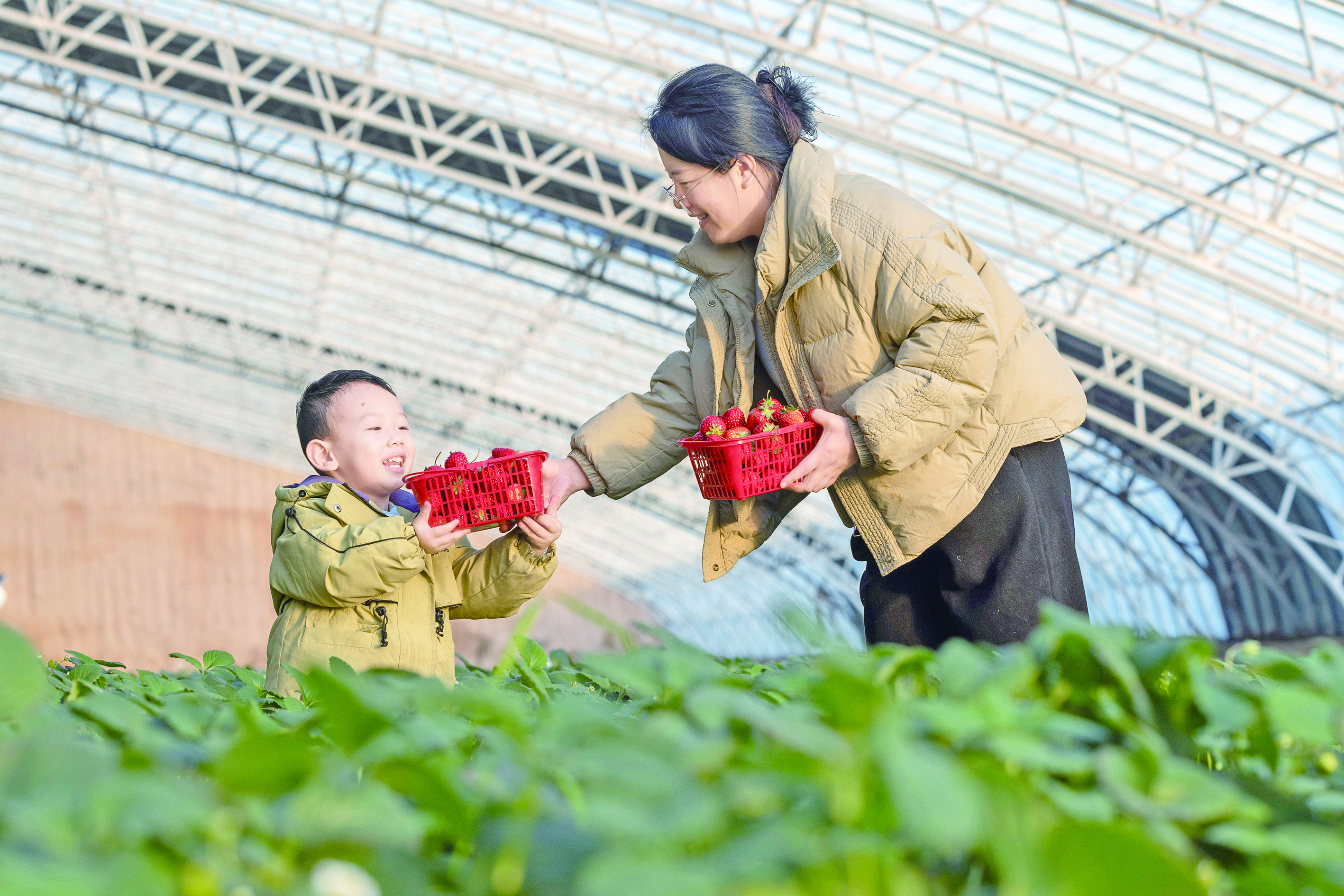 入冬以来,该村种植的各类草莓陆续成熟,吸引市民和游客前去体验采摘的乐趣。