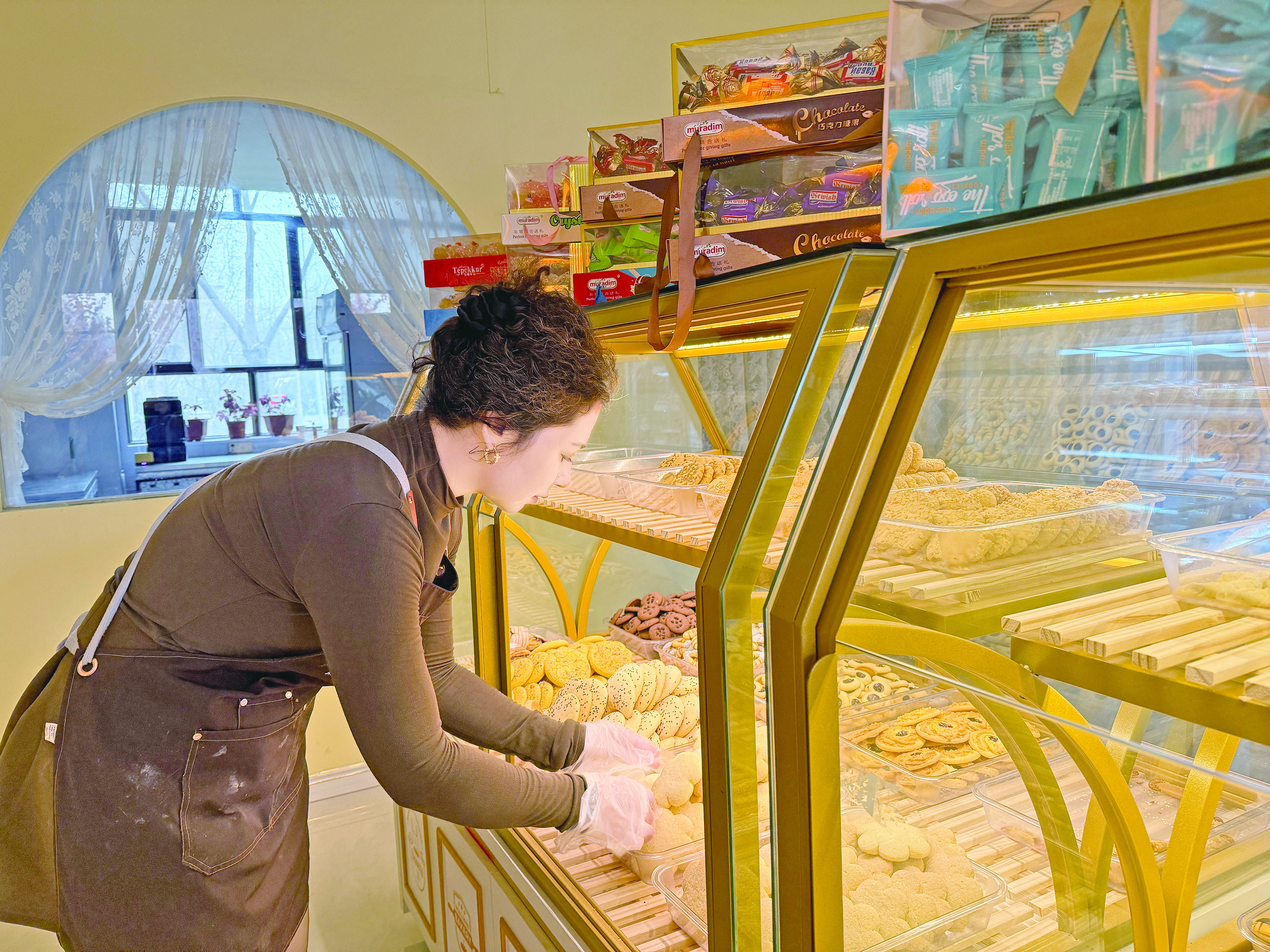 2021年,热孜艳在库车市开了首店,2024年7月获得宁波市援疆指挥部及库车市妇联烘焙屋项目资金支持,发展步入快车道。她坚持每周推出新品,每年远赴上海、成都等地学习,融合新疆传统与现代甜品技艺,不断丰富糕点种类,扩大经营规模。