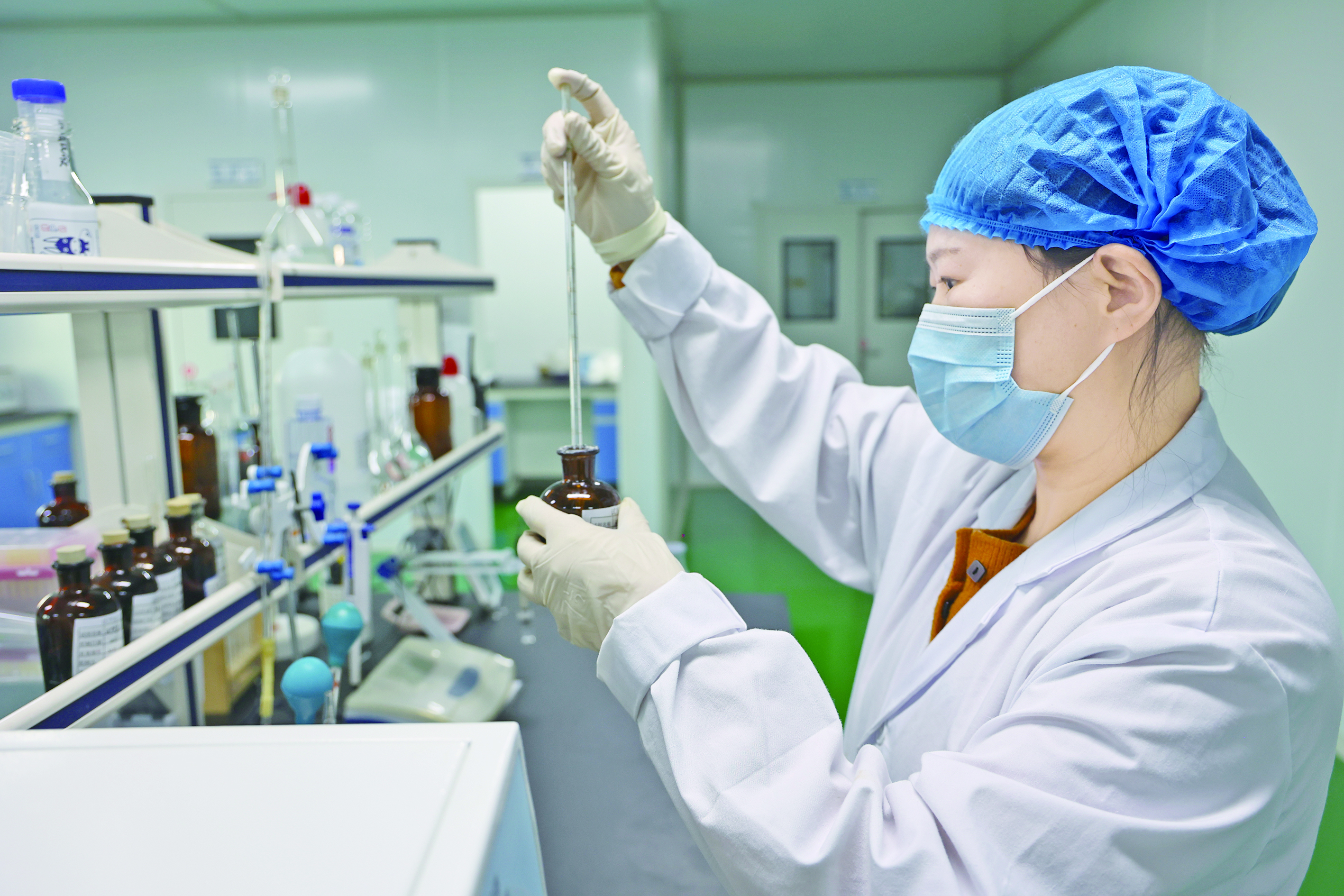 1月8日,新疆凌跃生物科技有限责任公司冻干驴奶粉厂,化验室工作人员在检测原料乳。