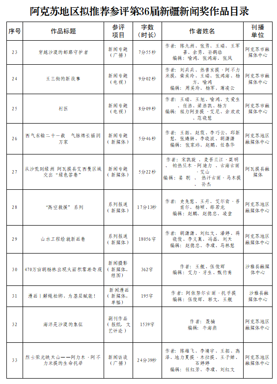 关于参评第36届新疆新闻奖阿克苏地区初评推荐新闻作品公示