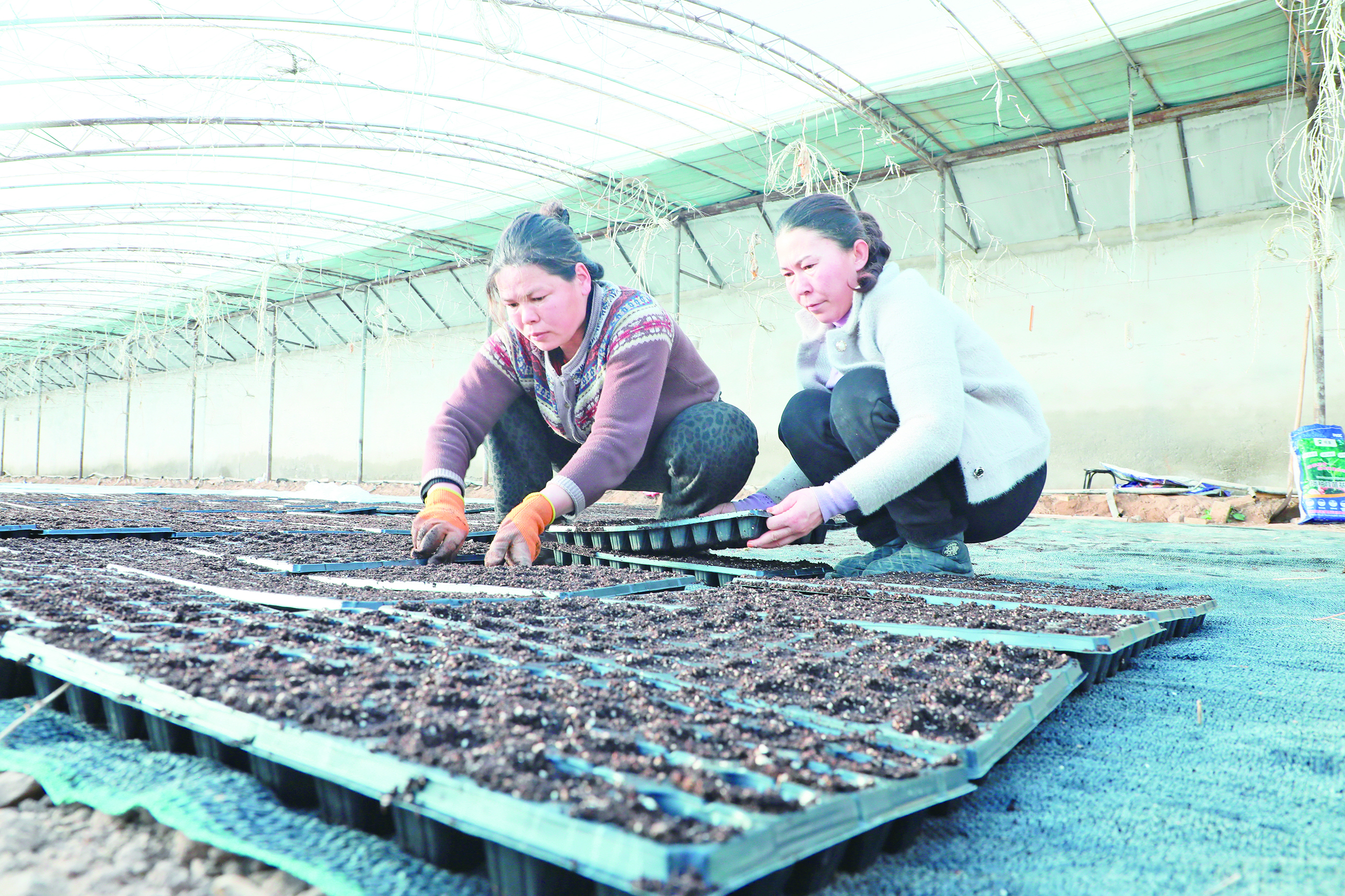 1月29日,库车市乌恰镇甬库振兴村育苗基地,工作人员在栽种甜瓜种子,为春季蔬菜、水果种植做好准备。 通讯员 吐尔松·托胡提  摄