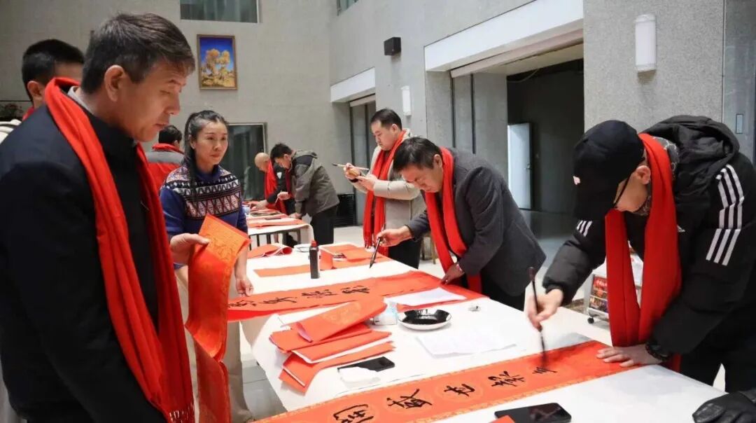 2月1日,阿克苏市文艺工作者走进拜城县察尔齐镇文化大礼堂,开展“万福迎春2026丙午马年·送祝福进万家”公益活动,文艺工作者为各族群众写春联、“福”字,传递新春暖意。通讯员 邱艳红 摄