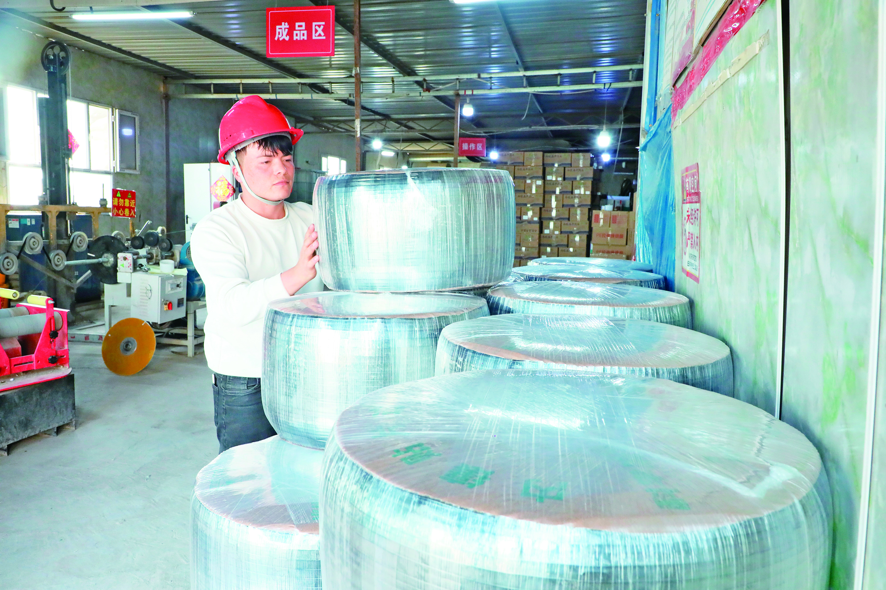2月24日,记者走进库车隆源塑业有限公司,只见生产车间内机器轰鸣,多条生产线高速运转,原料颗粒经加热、挤压、成型等多道工序后,一卷卷崭新的地膜生产出来。工人们有条不紊地进行原料投放、质量检测、成品打包等作业。