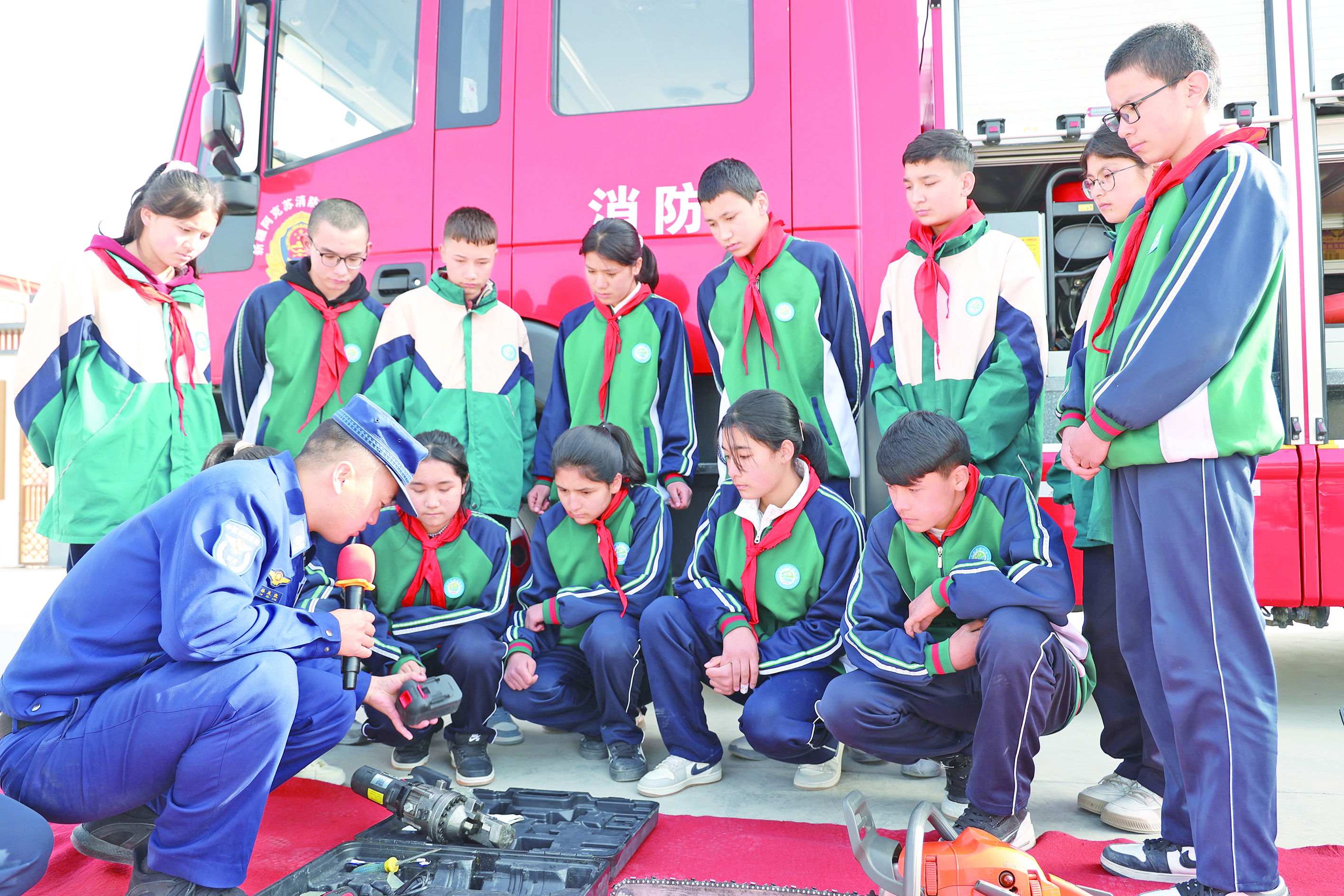 3月2日,乌什县消防救援大队联合县教育局,在县第四中学开展春季消防进校园宣传活动,为师生送上一堂干货满满的消防安全课。 通讯员 外力·克依木 摄
