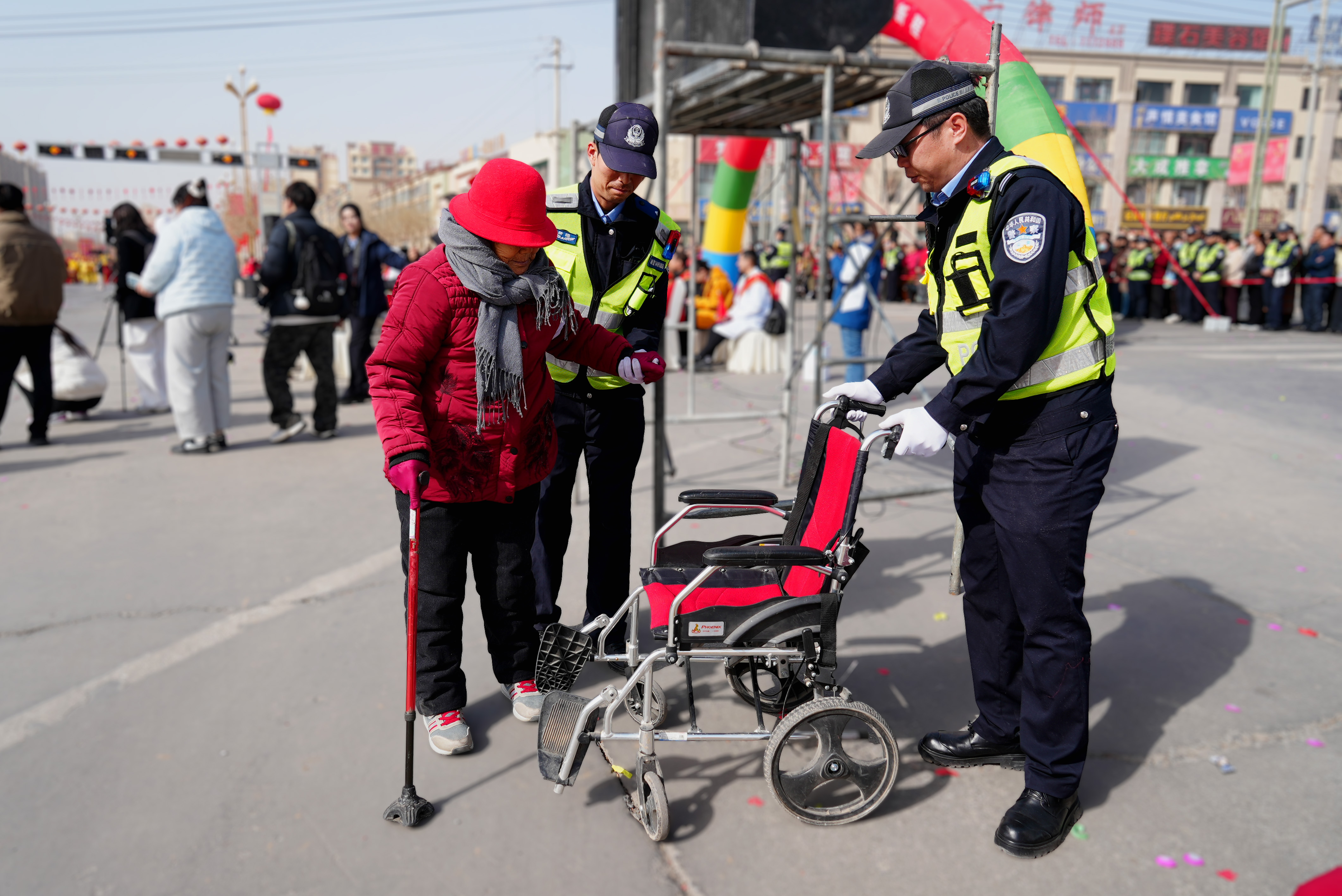 热闹的人群中,一抹忙碌的“藏蓝”成为最安心的底色。时值早春,寒意未消,库车公安民警辅警无惧严寒、恪尽职守,始终牢记“人民至上、安全第一”理念,牢固树立“群众过节、公安过关”的责任意识,以“万无一失、一失万无”的工作标准,用辛苦指数换取群众的安全指数、幸福指数、满意指数。他们穿梭在人潮中,排查隐患、疏导人流、解答咨询,眼神锐利而坚定,脚步匆忙却沉稳,用坚守与奉献,让“警察蓝”守护万家平安,绘就出民俗盛宴里最鲜明的“平安红”。