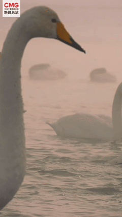 迎来数百只国家二级保护动物白天鹅