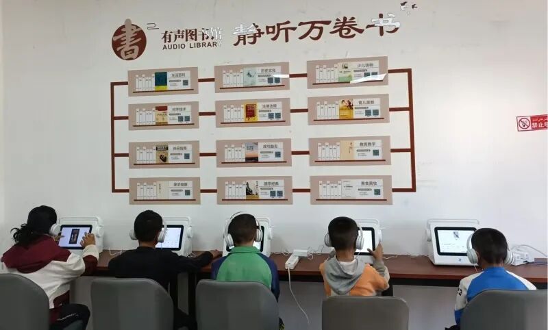 3月9日,在库车市乌恰镇清水村图书馆,孩子们在听有声书。通讯员 邓勇 摄