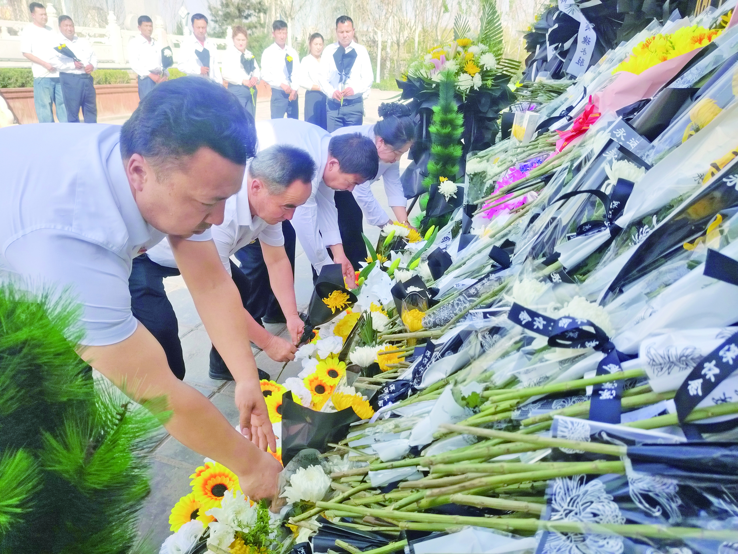 4月3日,新和县公安局交通管理大队组织民辅警走进烈士陵园开展祭扫活动。 通讯员 阿不都沙拉木·热西提 摄