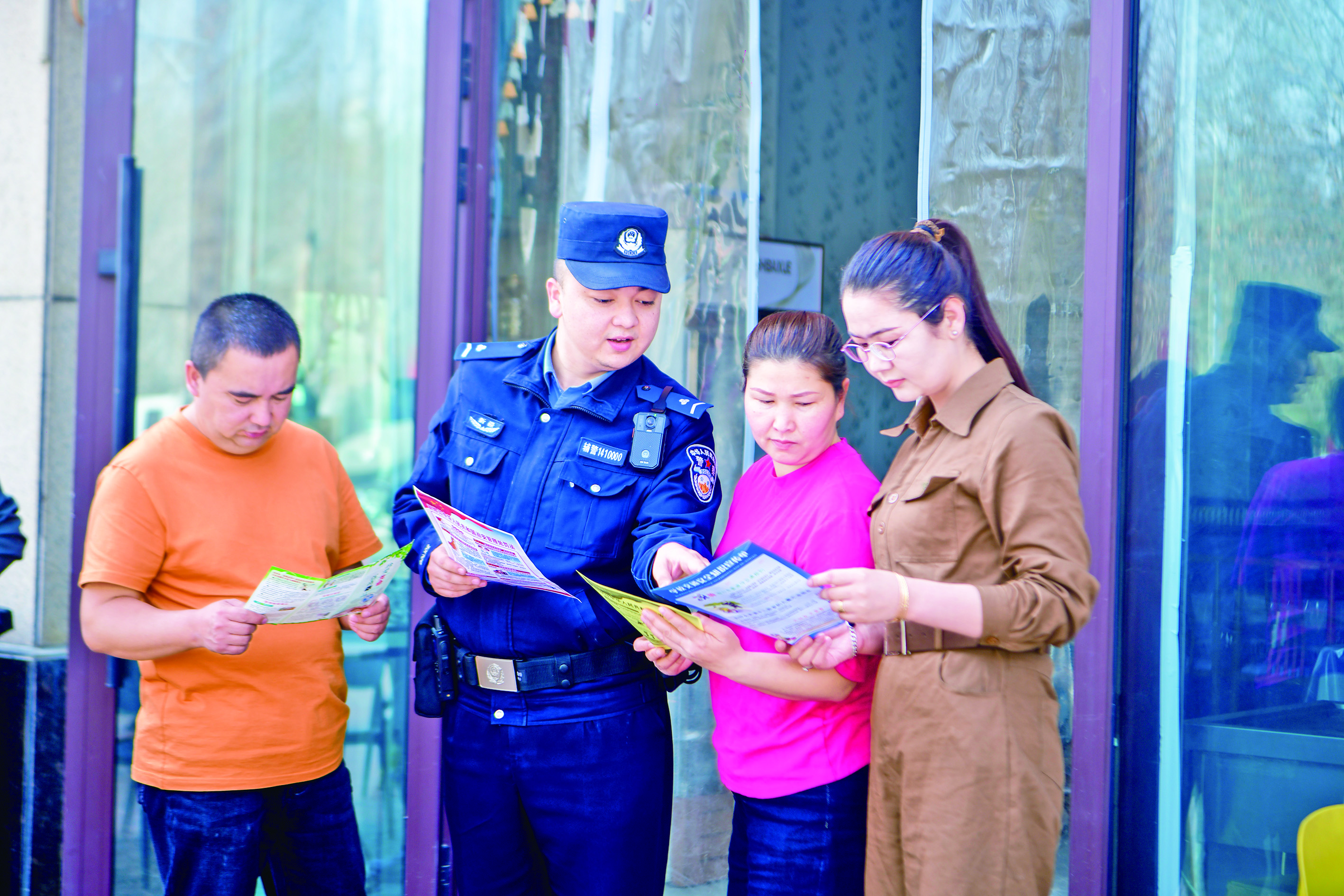 4月8日,新和县公安局民辅警深入辖区开展全民国家安全教育日普法宣传活动,引导群众在日常生活和工作中自觉尊法守法,增强防范意识。通讯员 阿不都沙拉木·热西提 摄