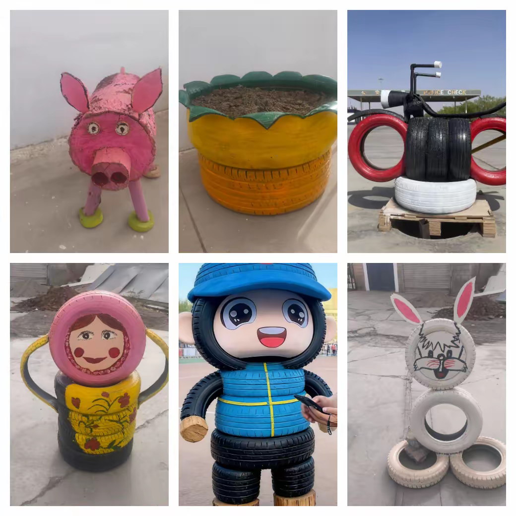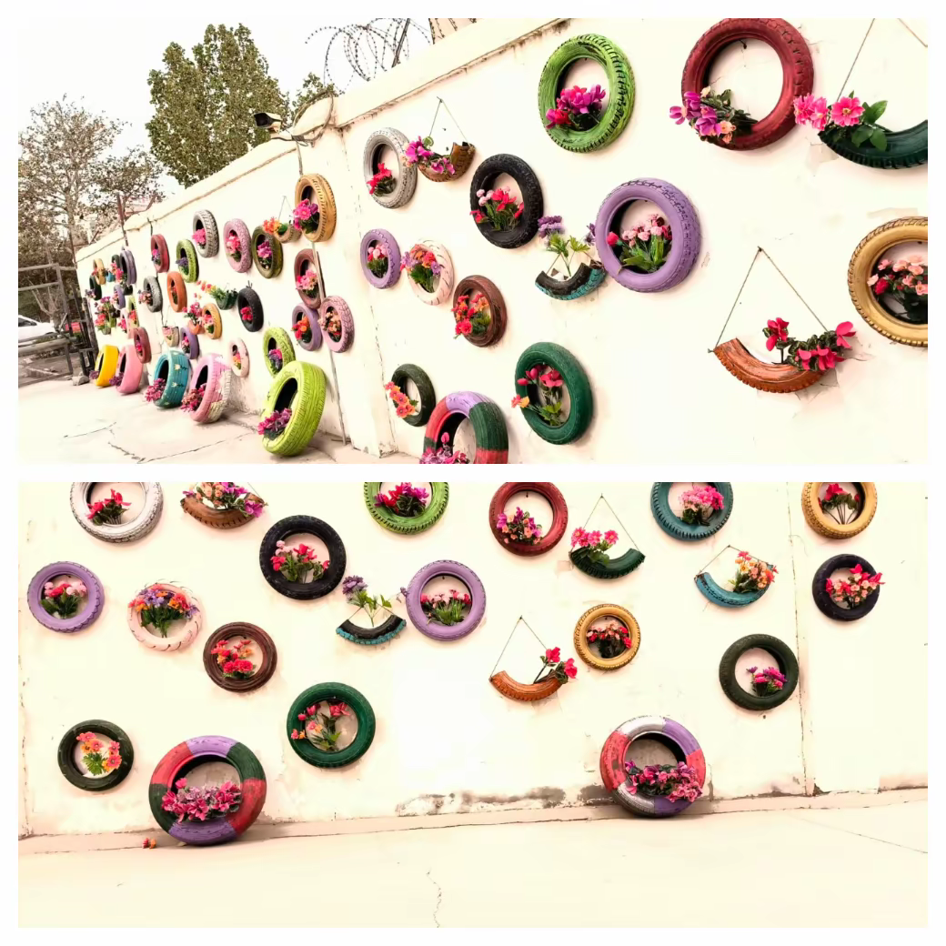 巧手雕琢旧材,构筑别致景致。主动收集闲置废旧轮胎、修剪下来的枯树枝以及废弃木桩,就地取材、集思广益,结合场地空间与整体布局精心构思设计。大家分工协作、默契配合,将轮胎错落堆叠、有序组合,打造出立体饱满的景观造型;再将木桩、枯树枝进行简单修整、巧妙搭配,或围边点缀、或穿插造型,与轮胎景观相互映衬。原本废弃无用的旧材料,在大家的巧手下摇身一变,成为质朴自然、别具韵味的“特色造型”,既省去高额投入,又彰显了创意与匠心,让寻常角落多了几分自然野趣与人文温度。