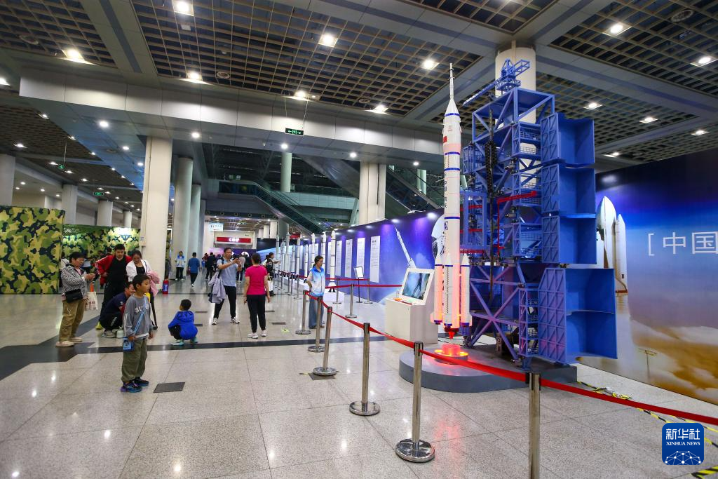 10月3日,在山东济南市舜耕国际会展中心,市民在参观航空航天科普展。新华社发(郝鑫城摄)