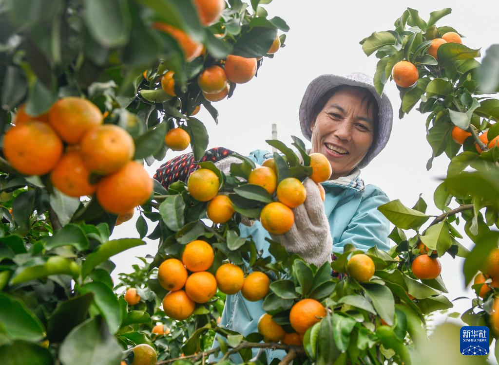 11月2日,湖南省永州市道县蚣坝镇兴桥村村民在采摘沙糖桔。新华社发(蒋克青摄)