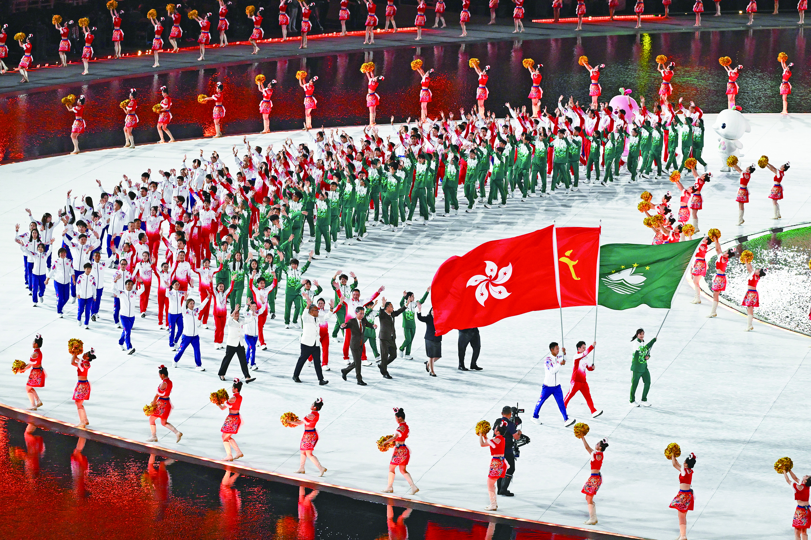 11月9日,广东省体育代表团、香港特别行政区体育代表团和澳门特别行政区体育代表团在入场仪式上共同入场。