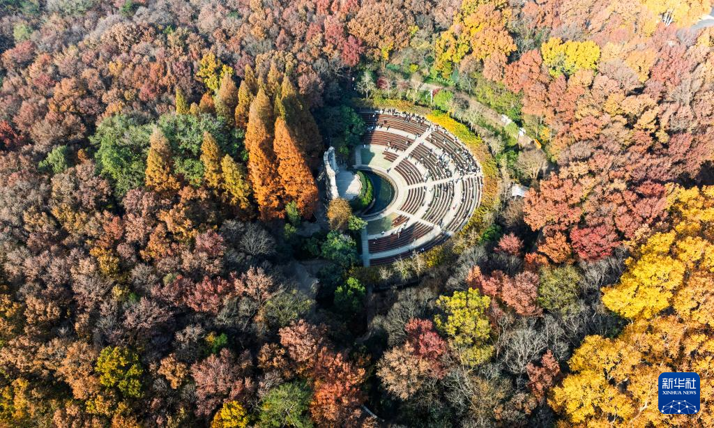 11月30日拍摄的江苏南京钟山风景名胜区音乐台初冬景观(无人机照片)。新华社发(孙忠南摄)