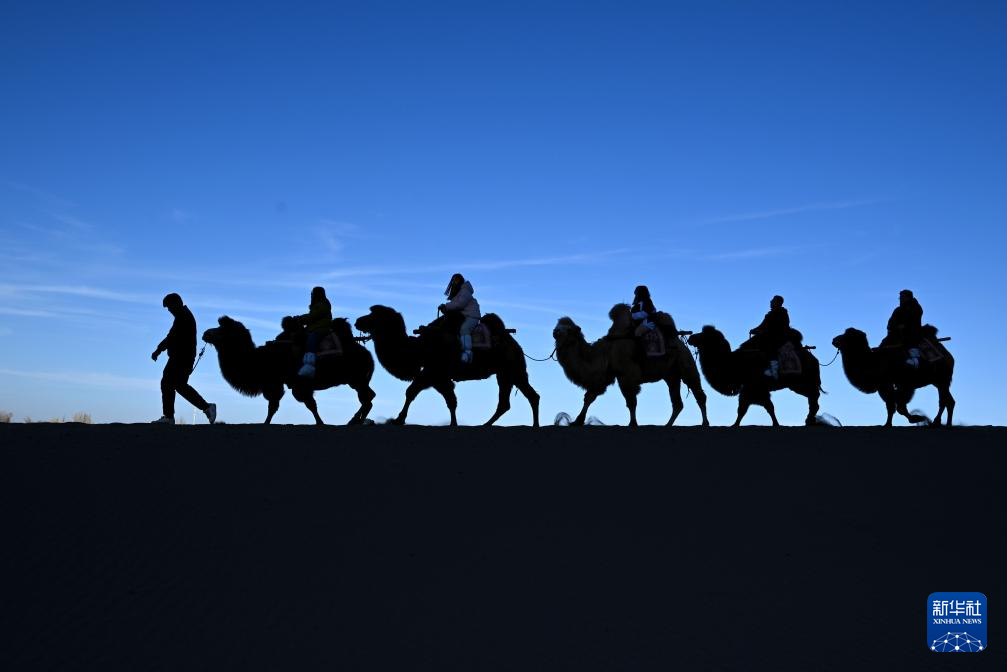 11月30日,游客在甘肃省敦煌市鸣沙山月牙泉景区游览。新华社发(张晓亮摄)