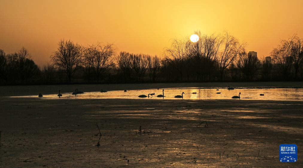 11月30日,群鸟在甘肃张掖国家湿地公园栖息游弋。新华社发(陈礼摄)
