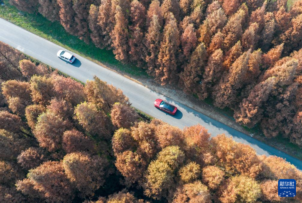 12月8日在浙江省湖州市长兴县夹浦镇拍摄的乡村公路(无人机照片)。新华社发(谭云俸摄)