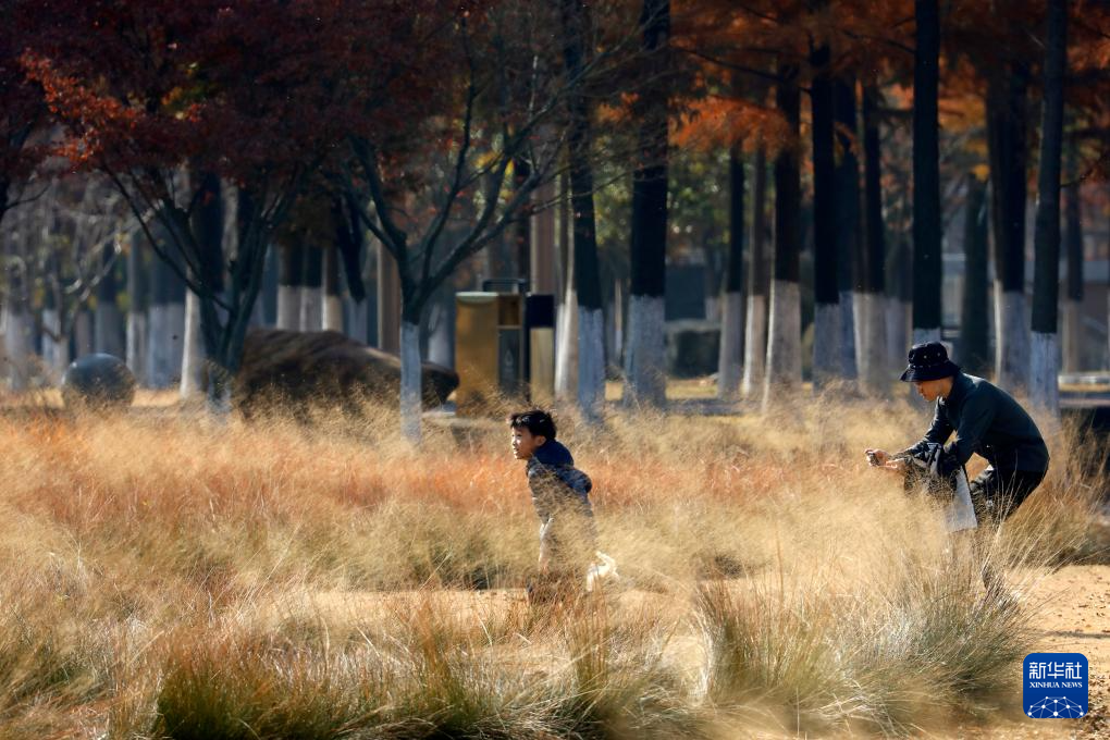 12月7日,市民在江苏省海安市上湖风景区游玩。新华社发(顾彬斌摄)