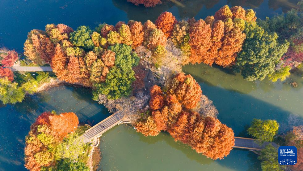 12月7日拍摄的江苏省昆山市景枫公园冬景(无人机照片)。新华社发(王须中摄)