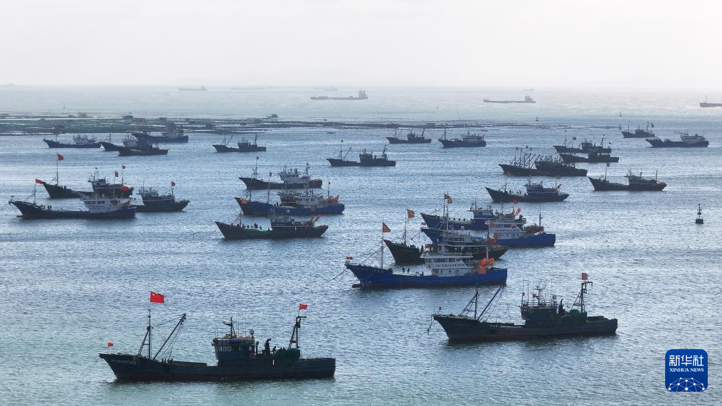 12月11日,在山东青岛西海岸新区积米崖渔港,渔船停靠在泊位上(无人机照片)。新华社发(俞方平 摄)