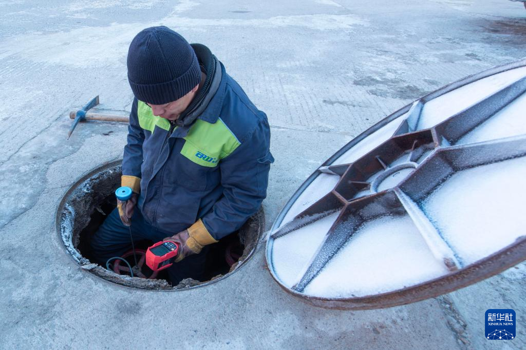 12月11日,黑龙江省富锦市一家供热企业的工作人员在巡护供热网络。新华社发(曲玉宝摄)