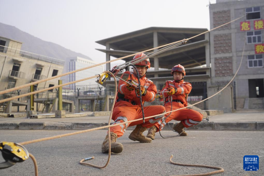 1月4日,武警青海总队机动某支队官兵开展救援演练。新华社发(刘进峰 摄)