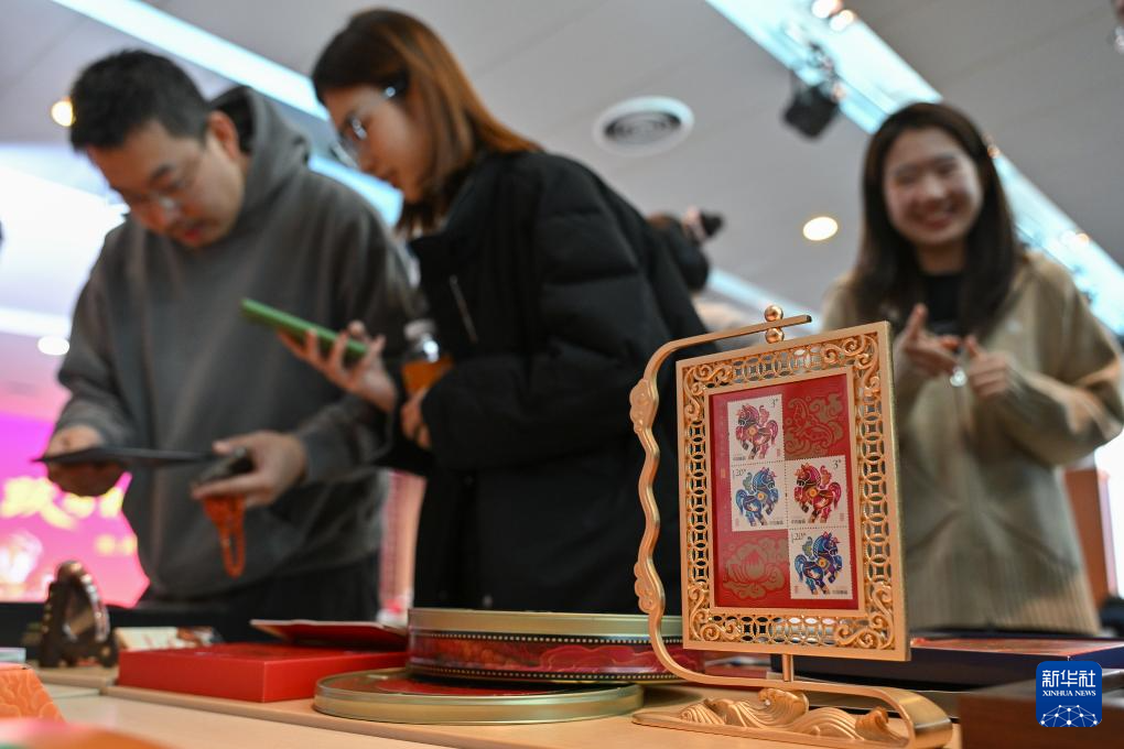 1月29日,中国集邮有限公司在北京举办以“年货迎祥·骏驰纳福”为主题的年货节暨生肖产品发布活动。活动聚焦生肖文化与年货消费需求,发布《跃马乾坤 八方来财》雕刻版生肖主题邮票珍藏摆件和《骏驰元宇》邮票珍藏册等多款生肖文化年节礼品,邀请多位邮票设计师现场分享设计理念,传播生肖文化。