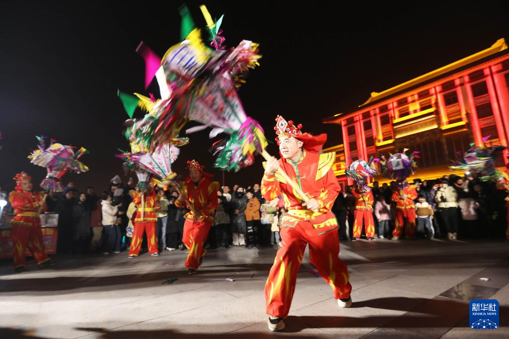 2月12日,社火队员在甘肃省定西市陇西县一处广场表演。新华社发(王克贤摄)